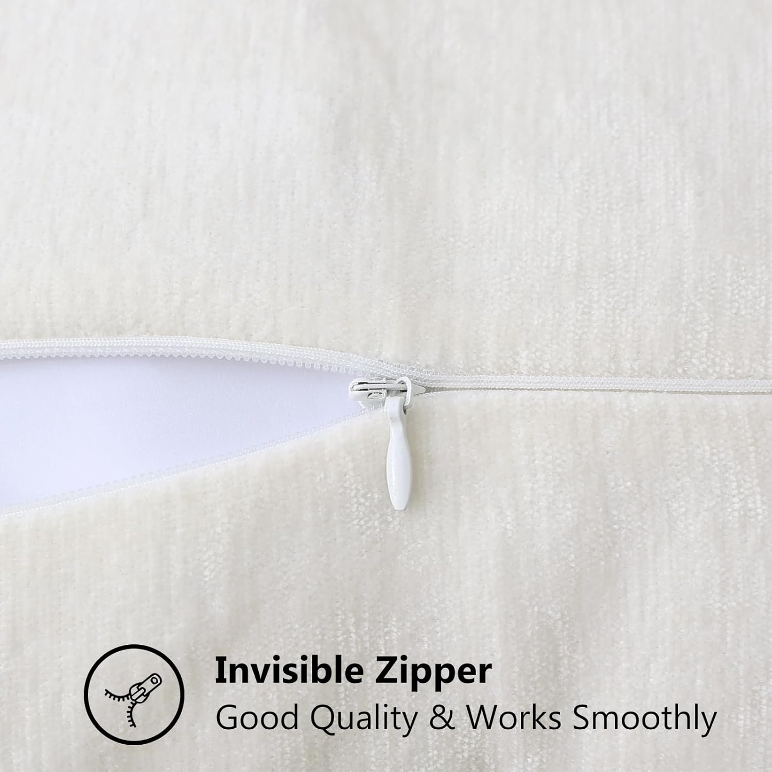 decorUhome Chenille Soft Throw Pillow Covers 20x20 Set of 2, Farmhouse Velvet Neutral Decorative Euro Pillow Covers with Stitched Edge for Couch Sofa Bed Home Decor, Cream White