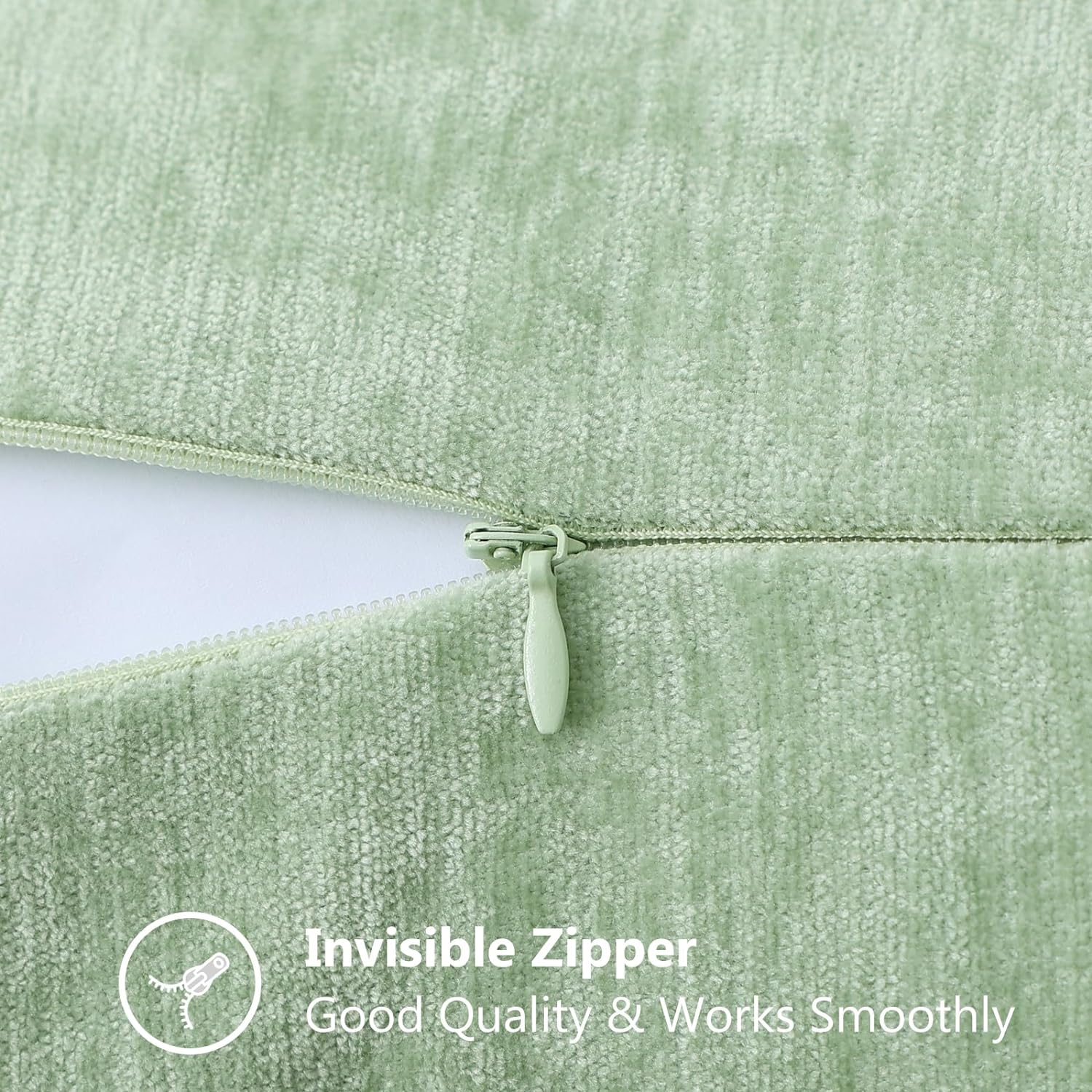 decorUhome Chenille Soft Throw Pillow Covers 22x22 Set of 2, Farmhouse Velvet Neutral Decorative Euro Pillow Covers with Stitched Edge for Couch Sofa Bed Home Decor, Sage Green