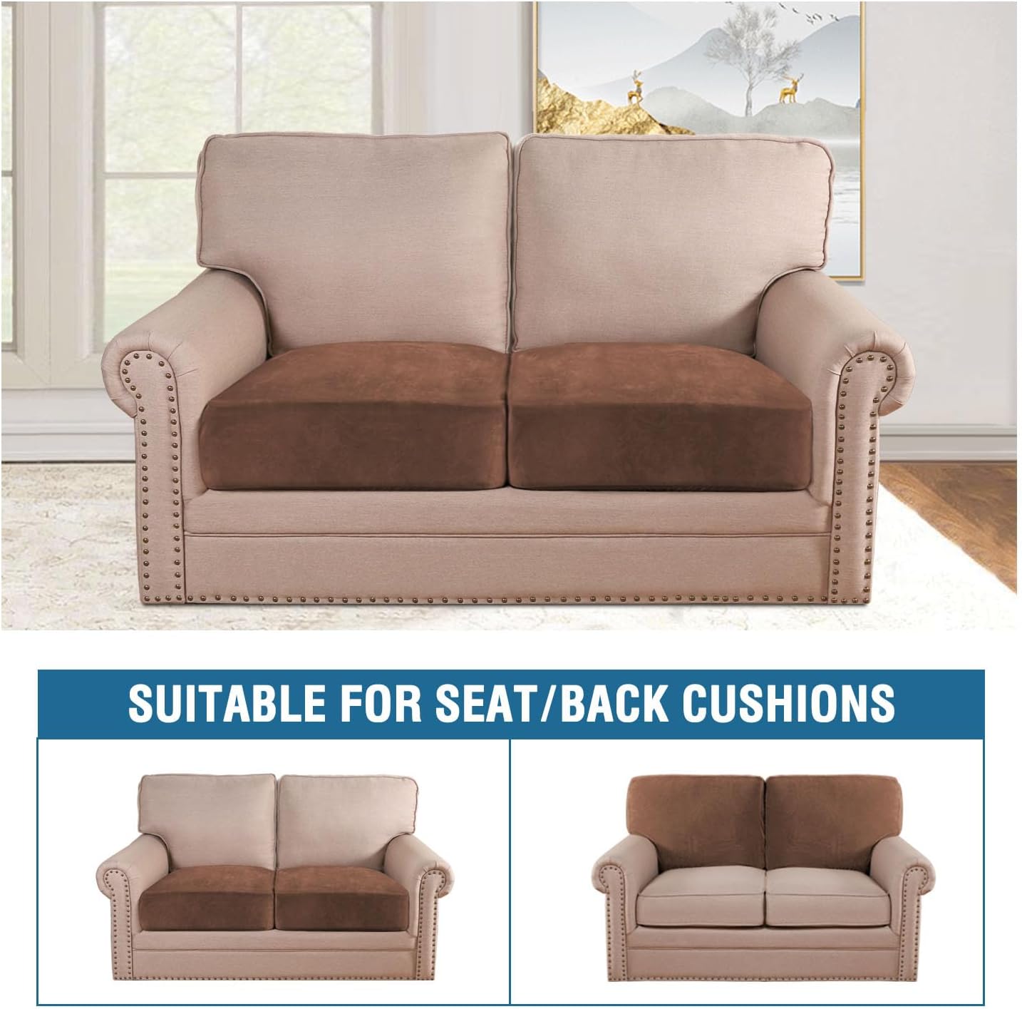 H.VERSAILTEX Velvet Stretch Couch Cushion Cover Plush Cushion Slipcover for Chair Loveseat Sofa Cushion Furniture Protector Seat Cushion Sofa Cover (2 Piece Large Sofa Cushion Covers, Caramel)