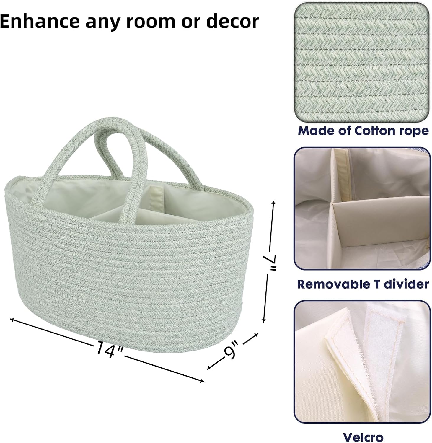 - Stylish baby caddy: Our diaper caddy organizer is 14” x 9” x 7”, The Baby diaper caddy organizer simplifies your diaper-changing routine by providing a dedicated space for all baby essentials. This caddy organizer with multiple compartments, easily store diapers, wipes, creams, toys, spare clothes, and more baby stuff. Streamline changing time, ensuring everything is within arm's reach.