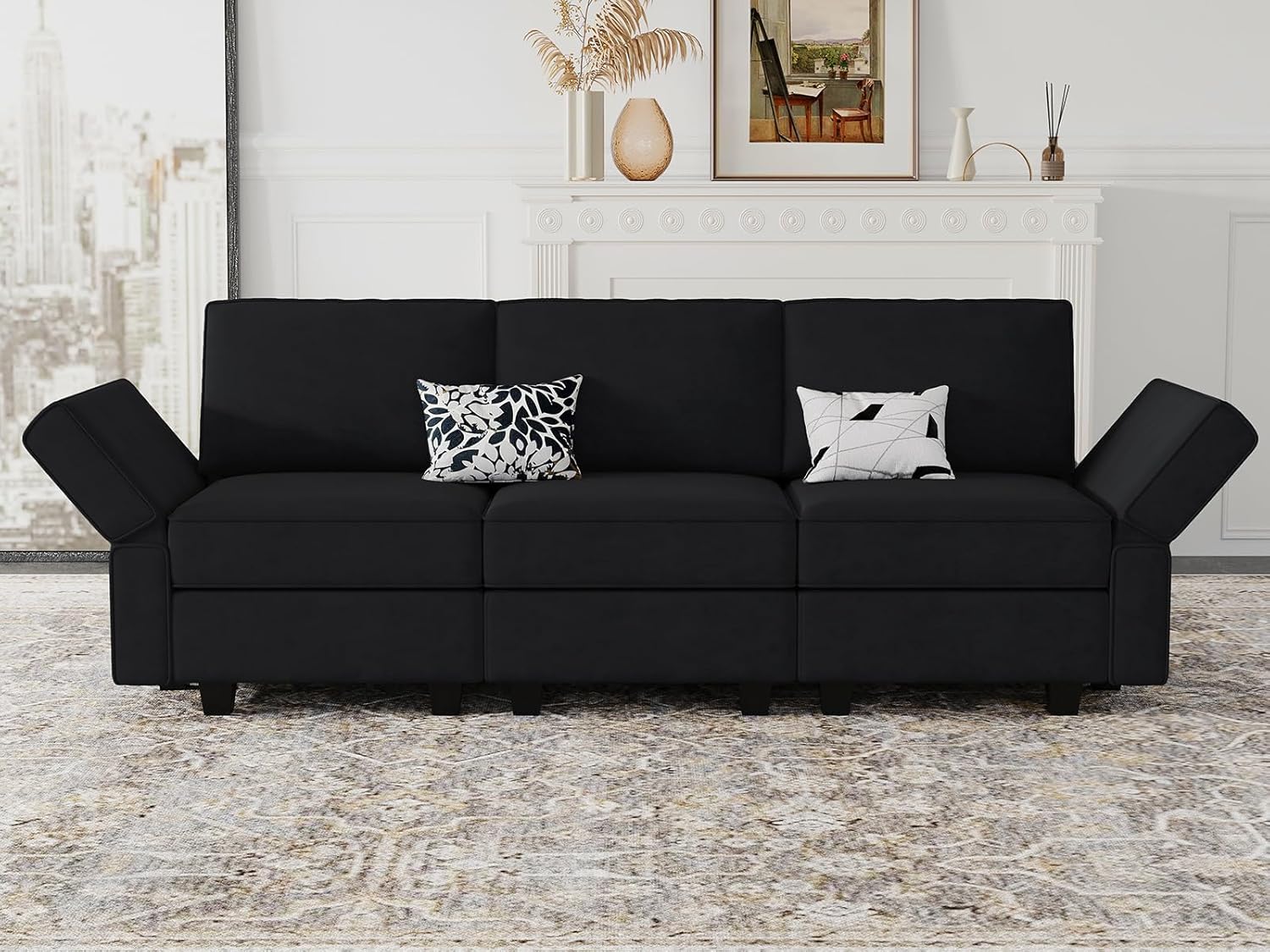 - Multi-functional Modular Sofa: This 3 seater sofa has multi-function versatile use, which can be easily and quickly converted into countless forms to meet your various needs. Each seat of 3 seater sofa has a hidden storage, and you can put away children’s toys or pillows. Storage dimensions: 22.40''(L)*22.40''(W)"*5.70"(H).