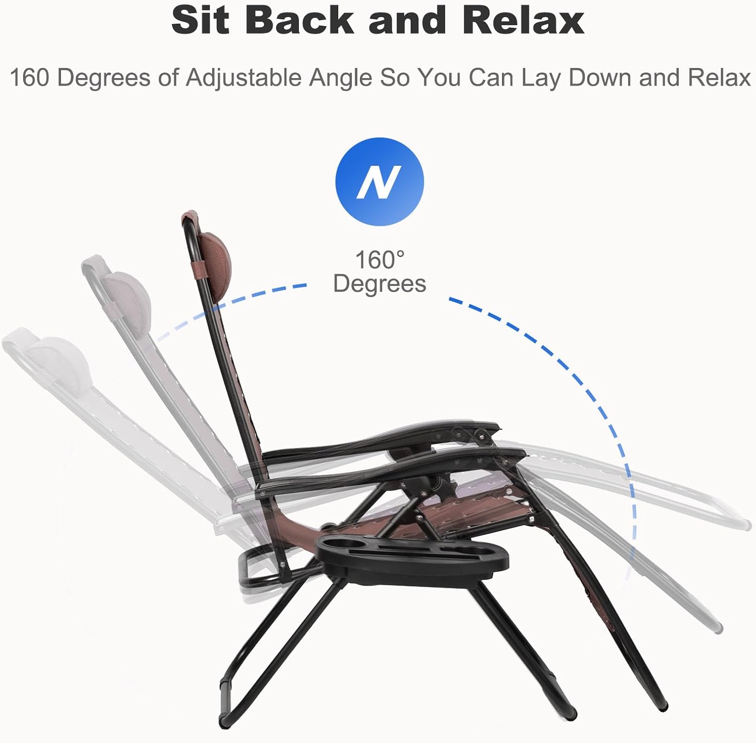 Nazhura Set of 2 Relaxing Recliners Patio Chairs Adjustable Steel Mesh Zero Gravity Lounge Chair Beach Chairs with Pillow and Cup Holder Khaki (Brown)