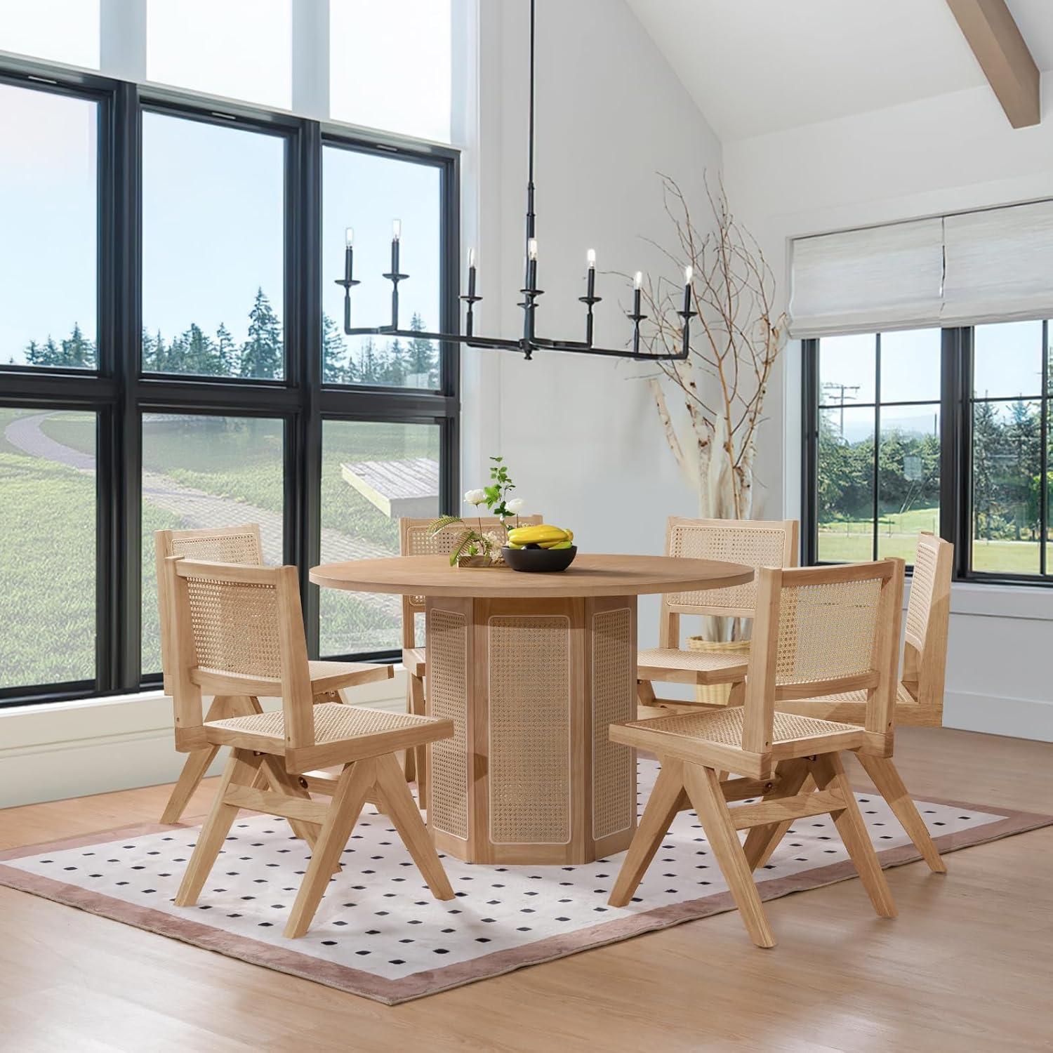- 【Breathable】The backrest and seat are made of rattan weaving, which is fine and transparent, increasing the breathability of the chair while retaining the natural texture and touch. The rattan backrest not only adds visual lightness, but also brings a hint of nostalgic retro flavor.