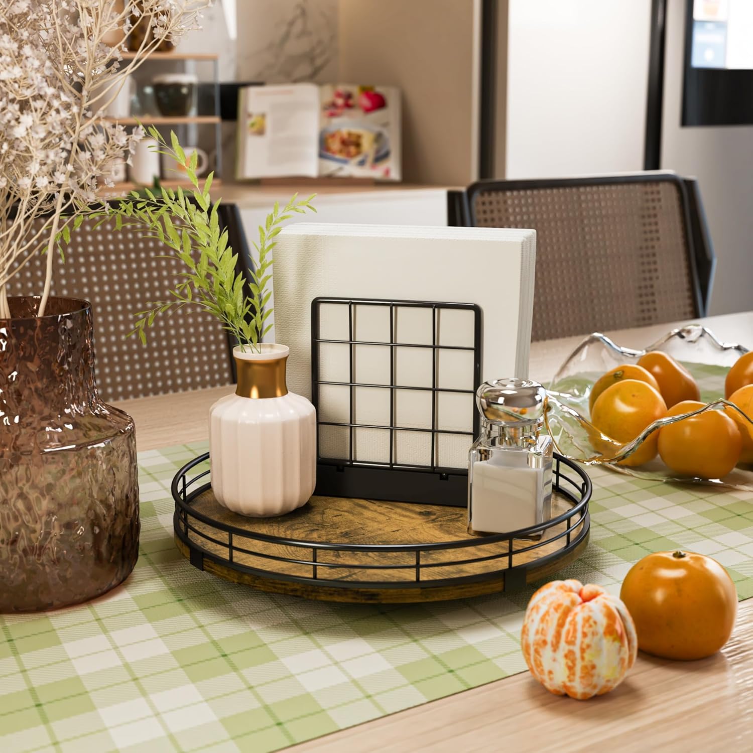 - Wide Application - The lazy susan organizer adopts handmade craftsmanship. Its MDF material is strong and long-lasting, not easy to wear and has no odor. The surface has exquisite texture, creating a unique rustic style