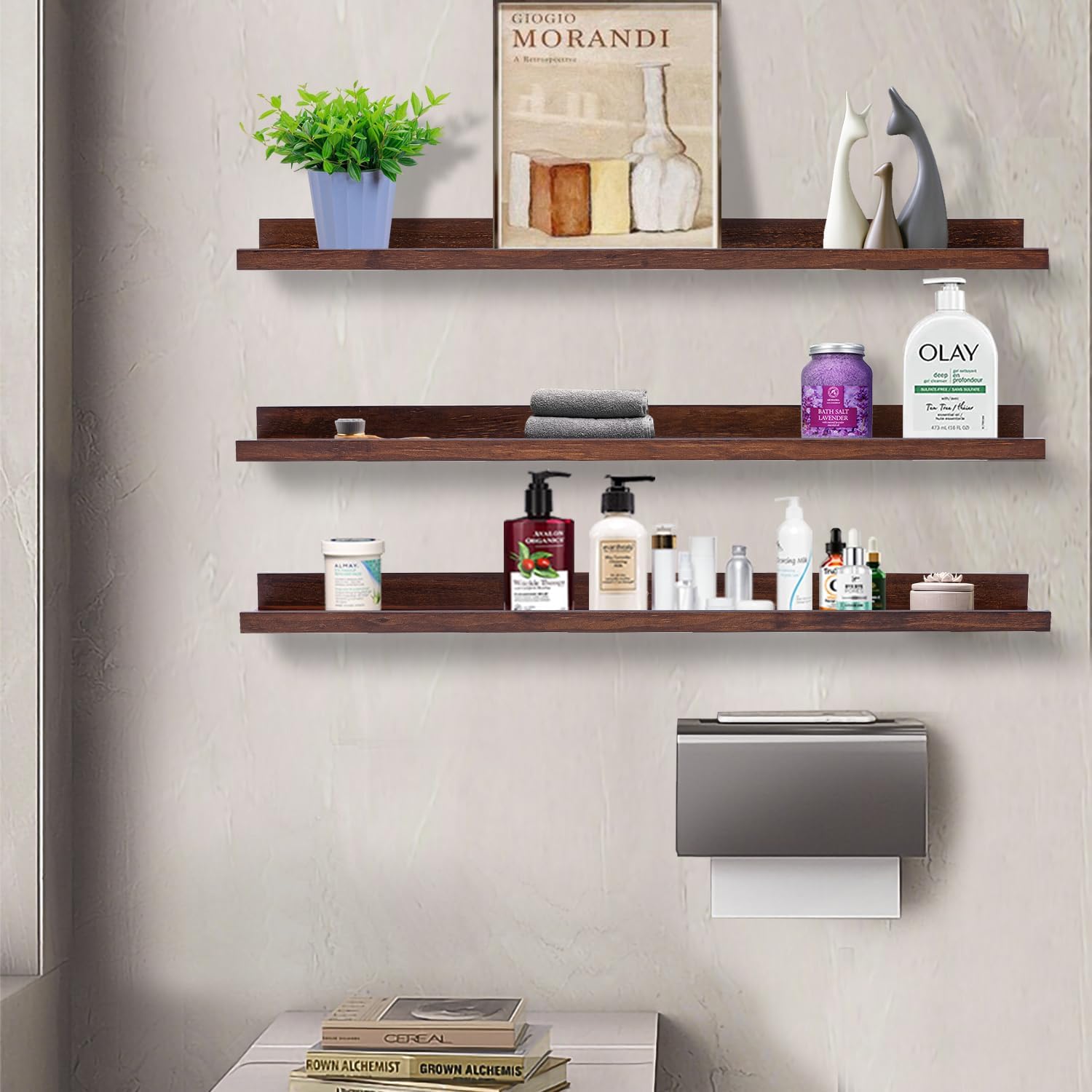 AZSKY Floating Shelves Wall Mount Deep Walnut for Wall Storage 36 Inch Rustic Picture Photo Ledge Shelf with Lip Nursery Book Shelves for Kids Room Bedroom Bathroom Living Room Kitchen Decor Set of 3