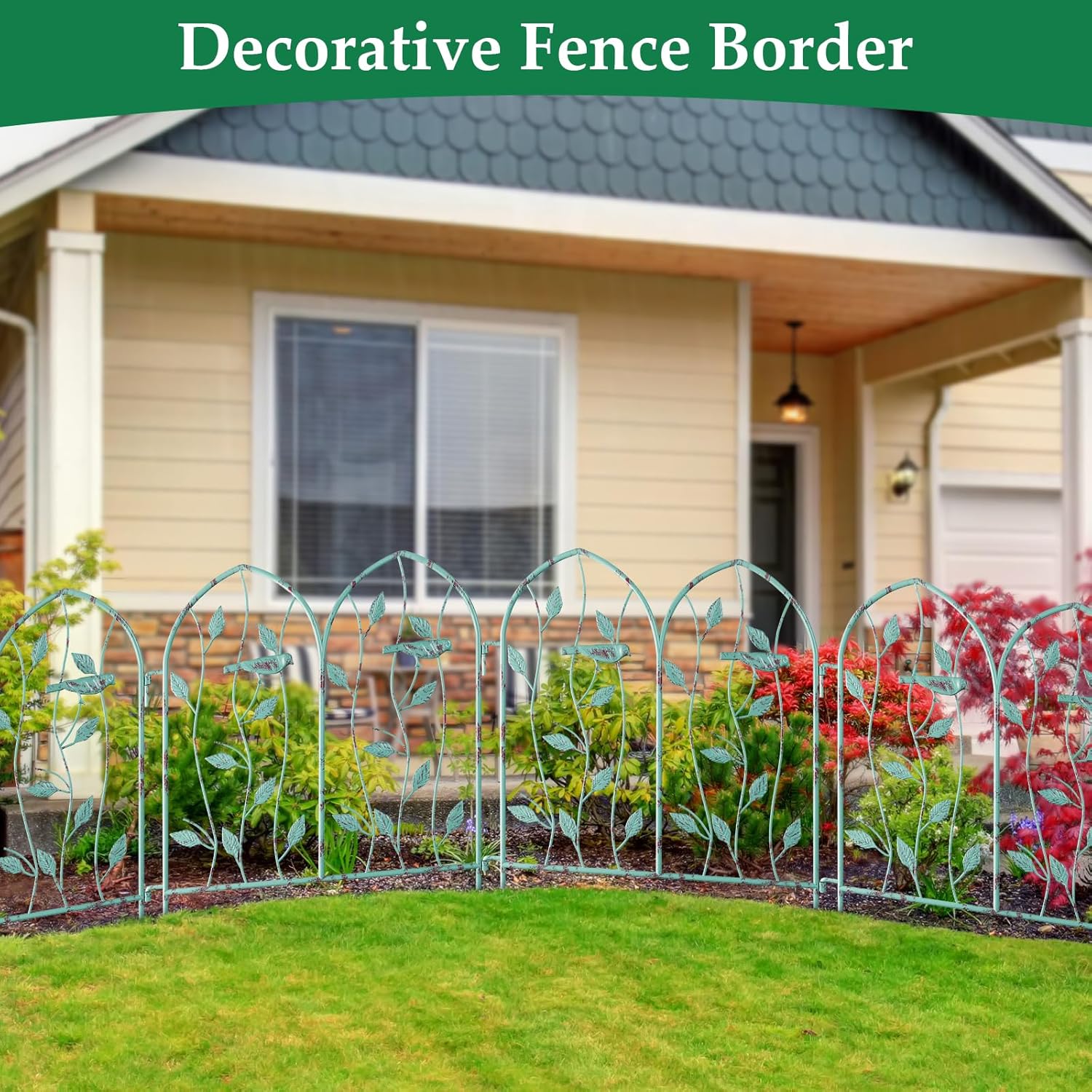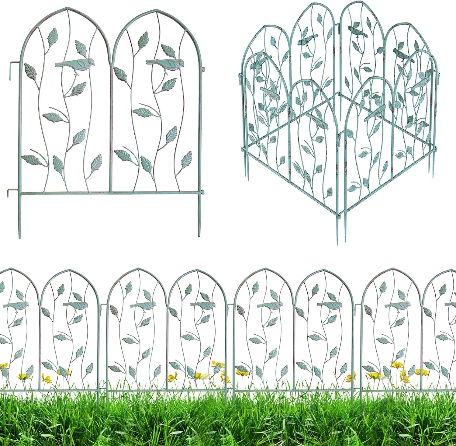 - Premium Quality: Iron fencing is made of high-quality metal and is sturdy and not easily damaged. Each fence iron rod can be firmly inserted into the ground, Retro light green color with graceful pattern design make it beautiful.