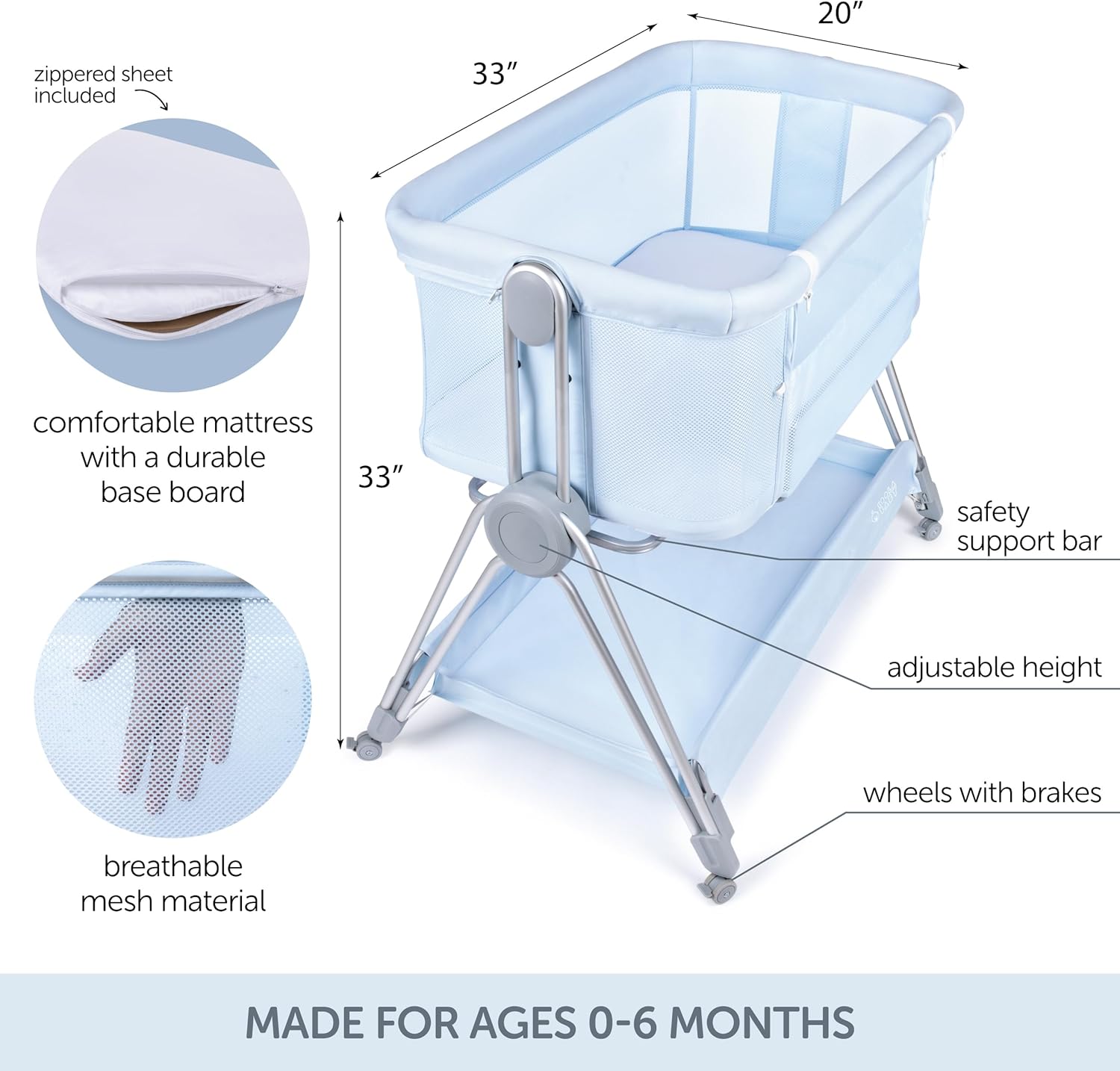 Baby Bedside Sleeper - Bassinet & Bedside Crib with Height Adjustment & Wheels - Can Be Placed Next to Bed - Attaches to Parents Bed - Easy to Fold & Carry Bassinet for Boys (Blue)