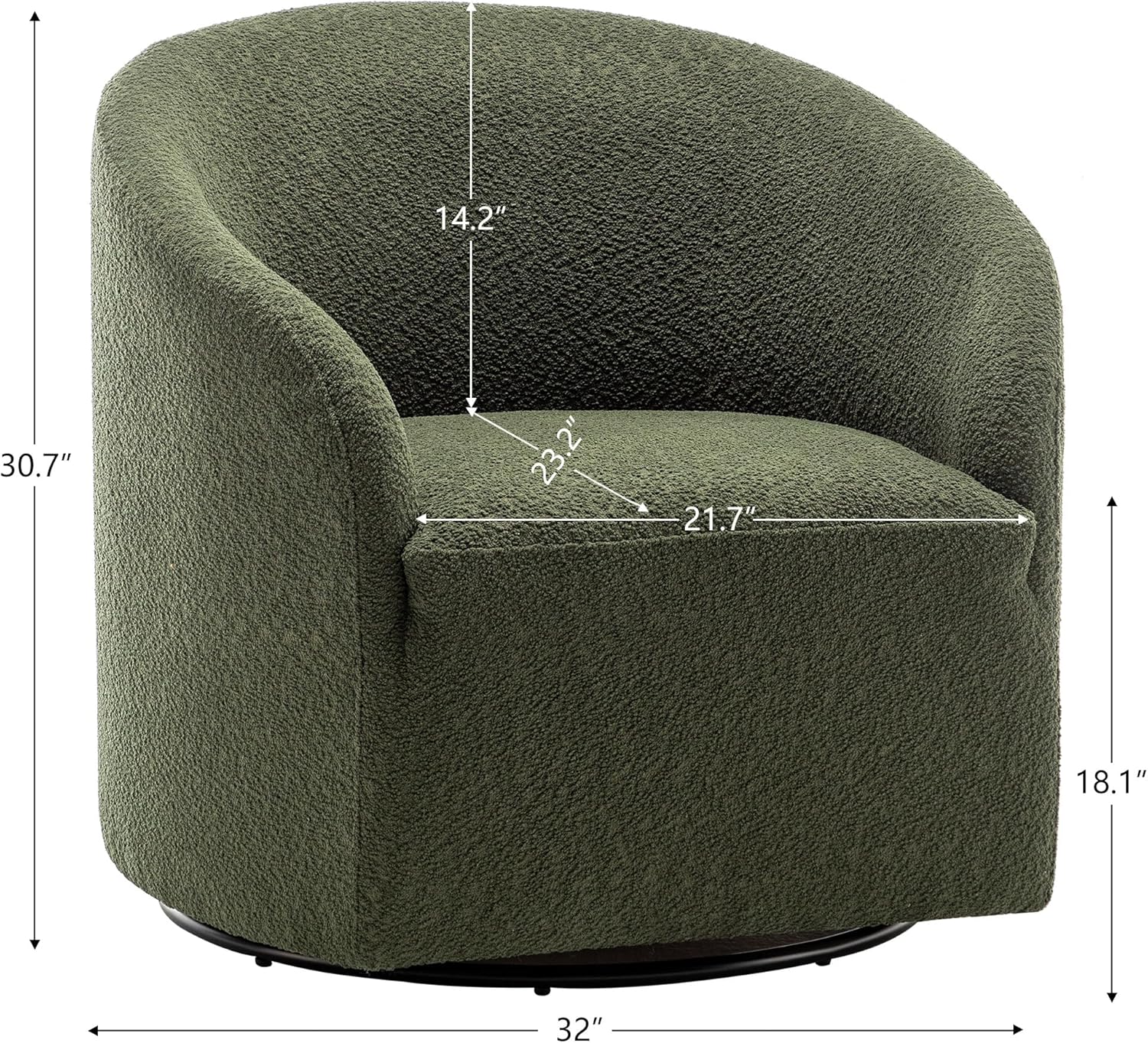- 32" WIDE SWIVEL BARREL CHAIRS: 32 inches is the most suitable width for the swivel accent chairs to provide you with ample and comfortable seating space. The wider width allows you to sit comfortably without feeling cramped or restricted, giving you freedom of movement.