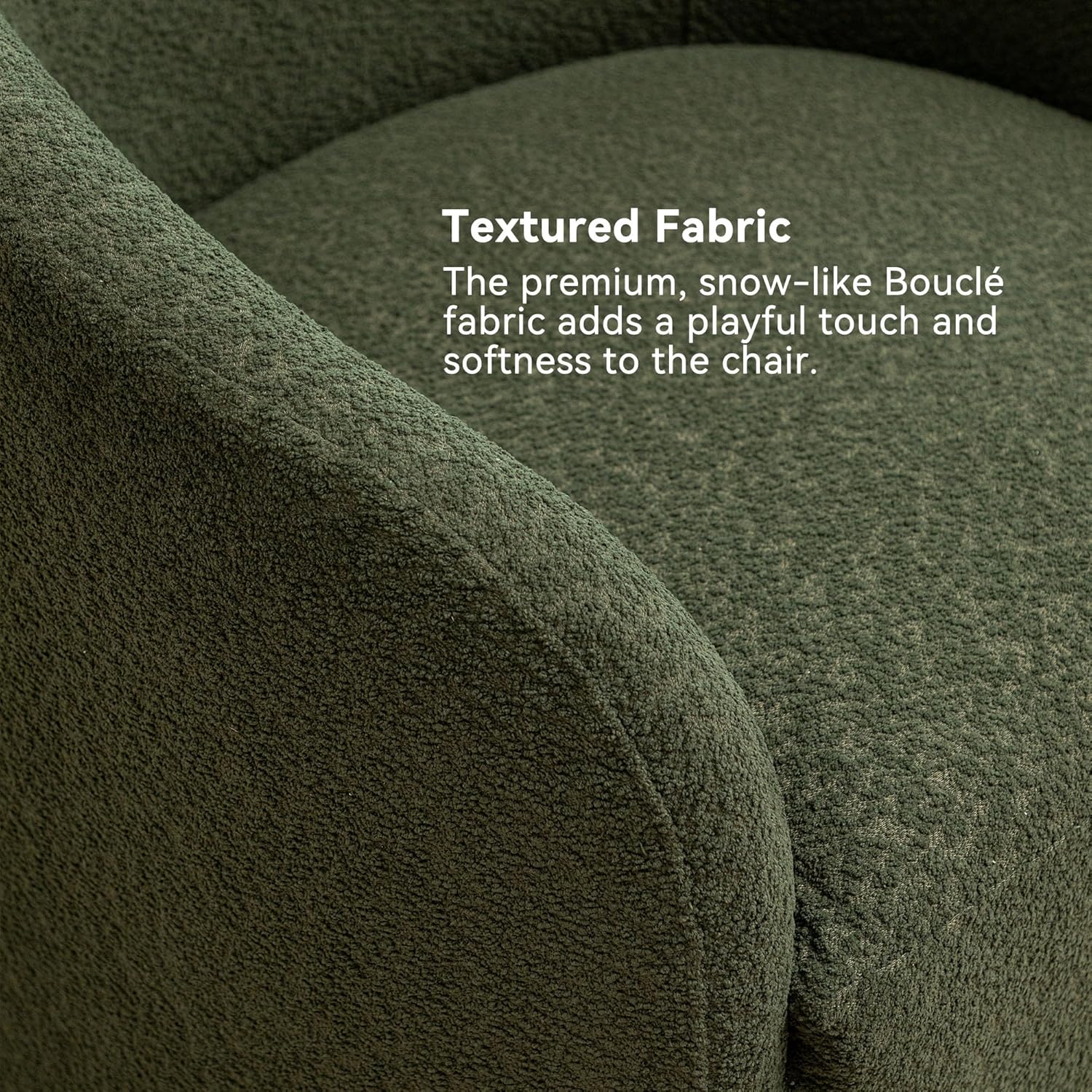 - PREMIUM BOUCLE FABRIC: The boucle upholstered swivel barrel chairs are covered in a premium boucle fabric that not only looks great but also feels cozy and soft to the touch. The texture of the boucle fabric adds an extra layer of comfort to the chairs, making it a great option for anyone looking for a comfortable seating option.