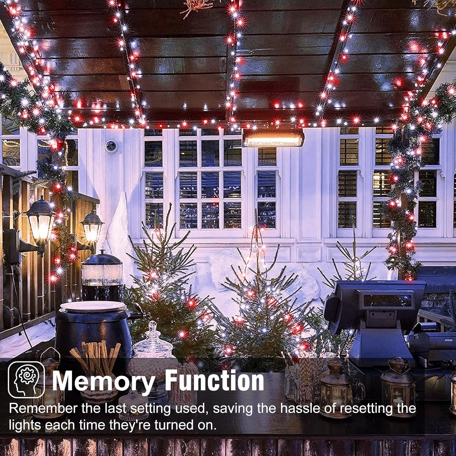 100FT 300 LED Christmas Lights Outdoor, Plug in Christmas Tree Lights with 8 Modes Waterproof, Green Wire Twinkle Tree Lights for Indoor Patio Garden Party Holiday Decorations, Red White