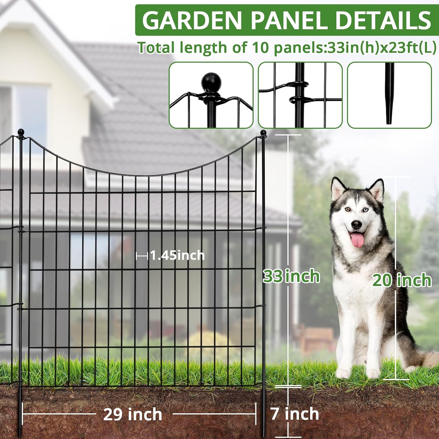10 Panels No Dig Decorative Outdoor Garden Fence for Yard, 32 in(H) X 23.6 ft(L) Animal Barrier Fencing Rustproof Metal Wire Border for Dog, Rabbits, Landscape Temporary Defense with 11PCS Stakes