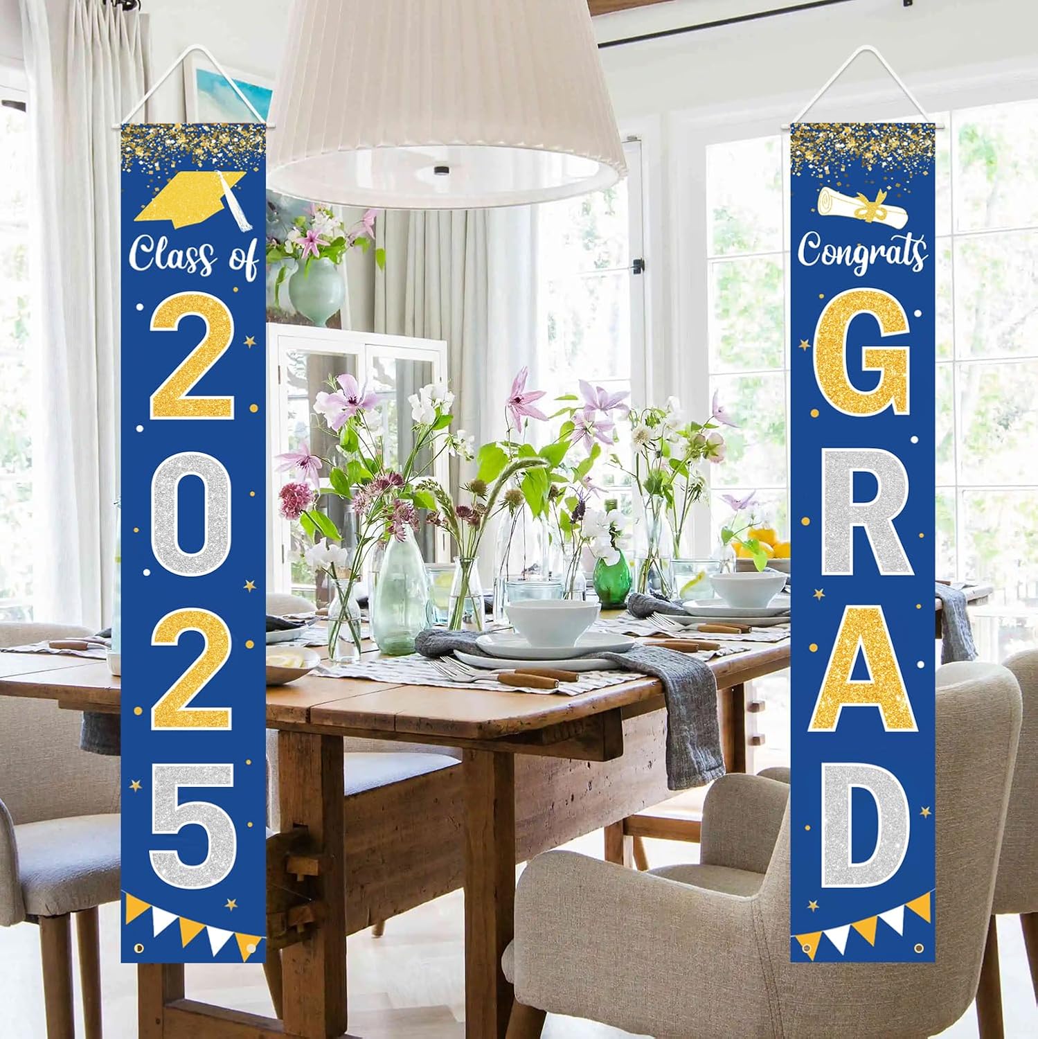 Graduation Decorations 2025 GRAD Banner Blue Porch Door Sign Welcome Banner For Indoor Outdoor Wall Graduation Decorations Class of 2025