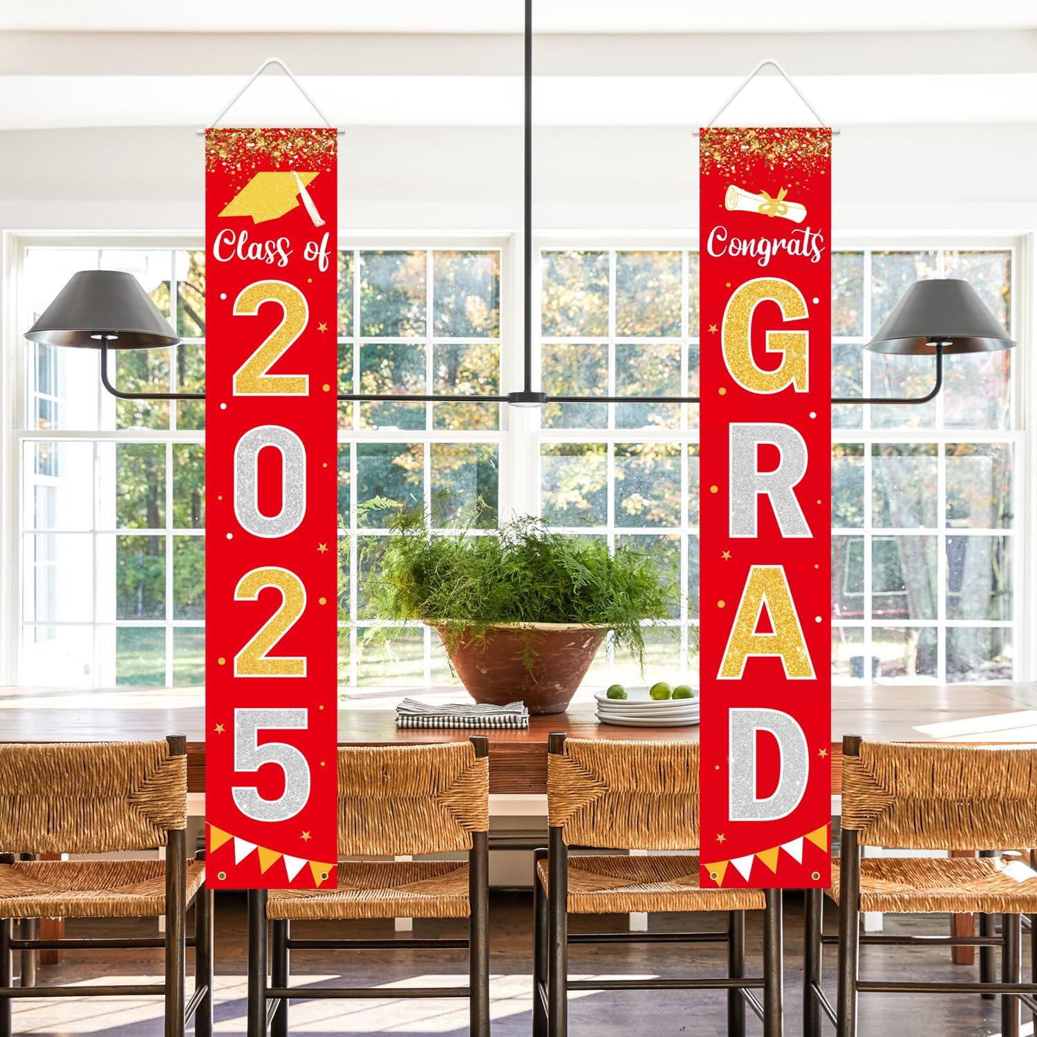 Graduation Decorations 2025 GRAD Banner Red Porch Door Sign Welcome Banner For Indoor Outdoor Wall Graduation Decorations Class of 2025