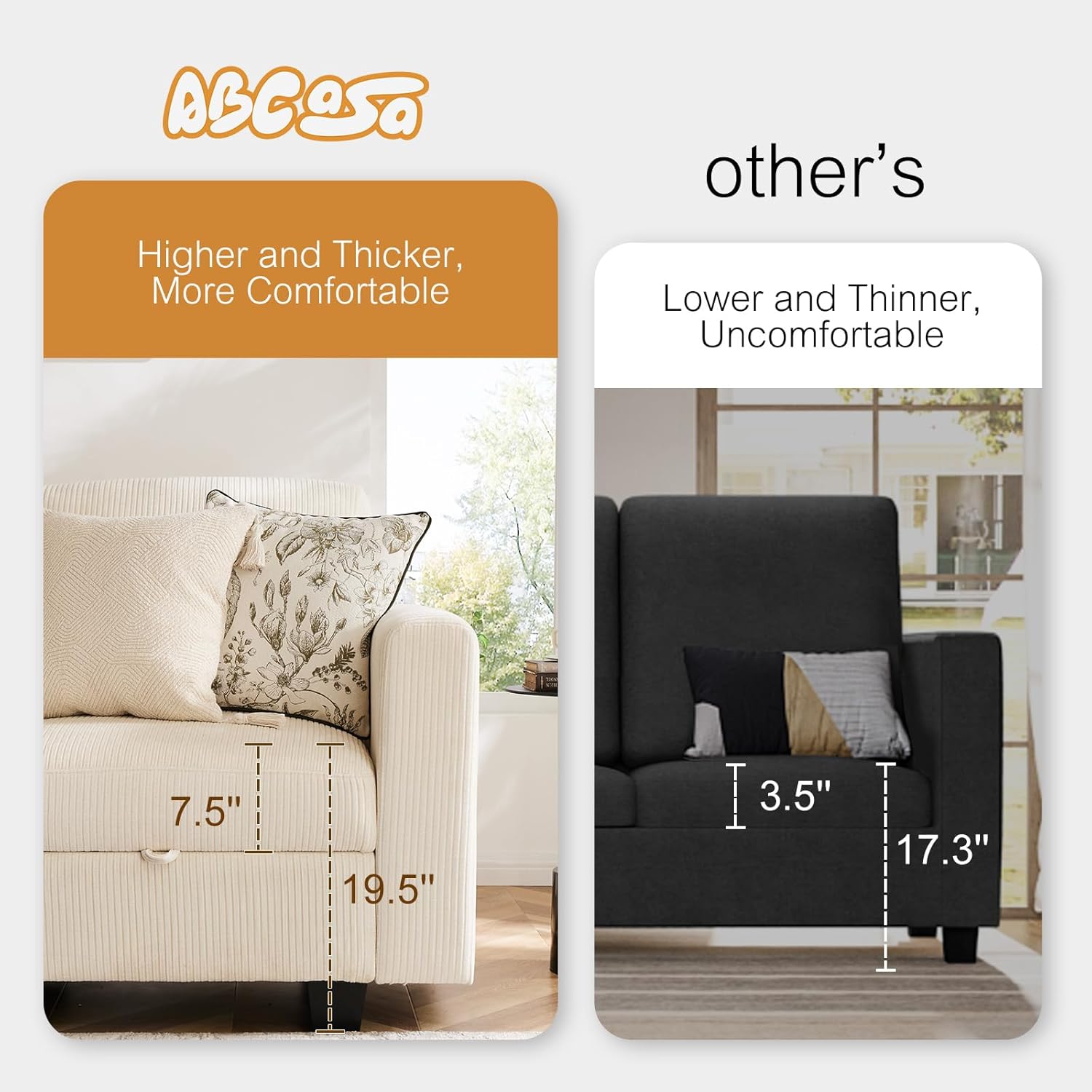 38.5 Oversized Accent Chair with Storage Ivory Corduroy, Single Modern Accent Sofa Chair with Arms for Apartment Living Room (21" Deep Seat)