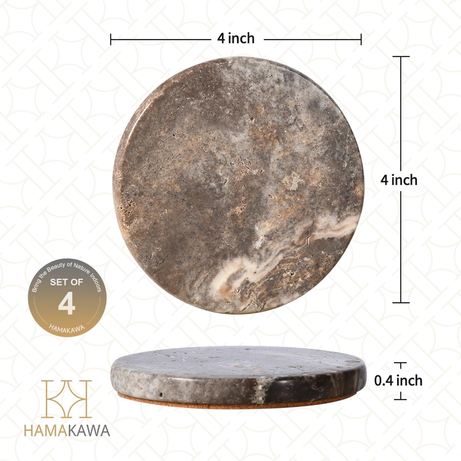 - Non-slip and Easy to Clean: Each travertine coaster comes with a cork bottom, which prevents tabletop abrasions and scratches and also keeps the coaster securely on the table. It can be washed under water or wiped down with a damp cloth. Travertine is absorbent and can quickly soak up condensation or spills to prevent staining your tabletop