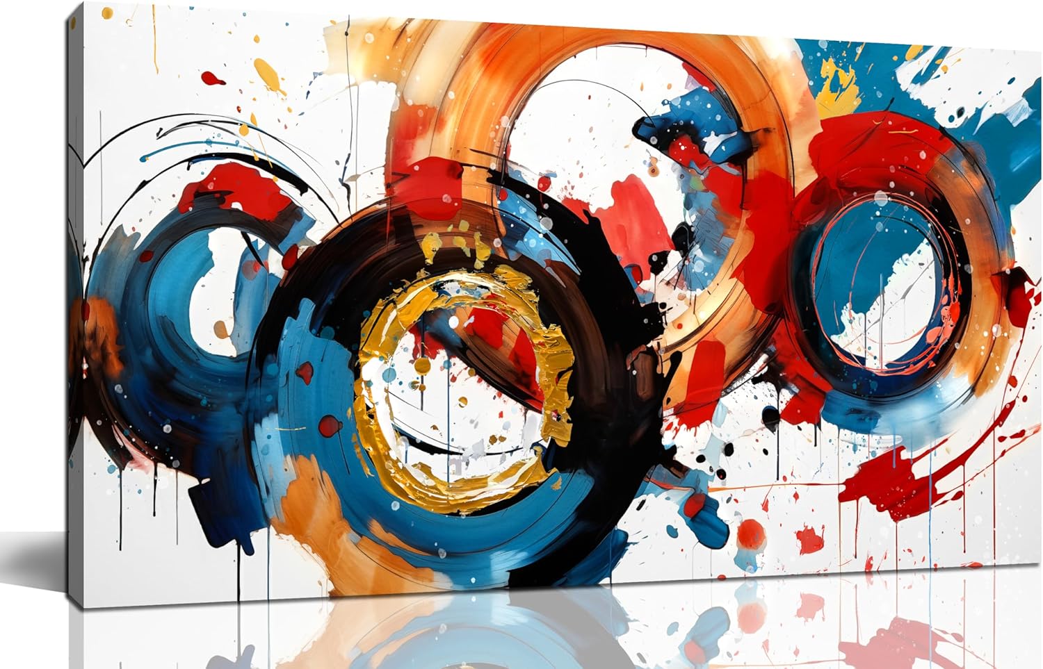 Abstract Wall Art Large Canvas Prints Modern Living Room Bedroom Home Office Wall Decor Framed Colorful Circle Abstract Picture Ready to Hang Size 20x40