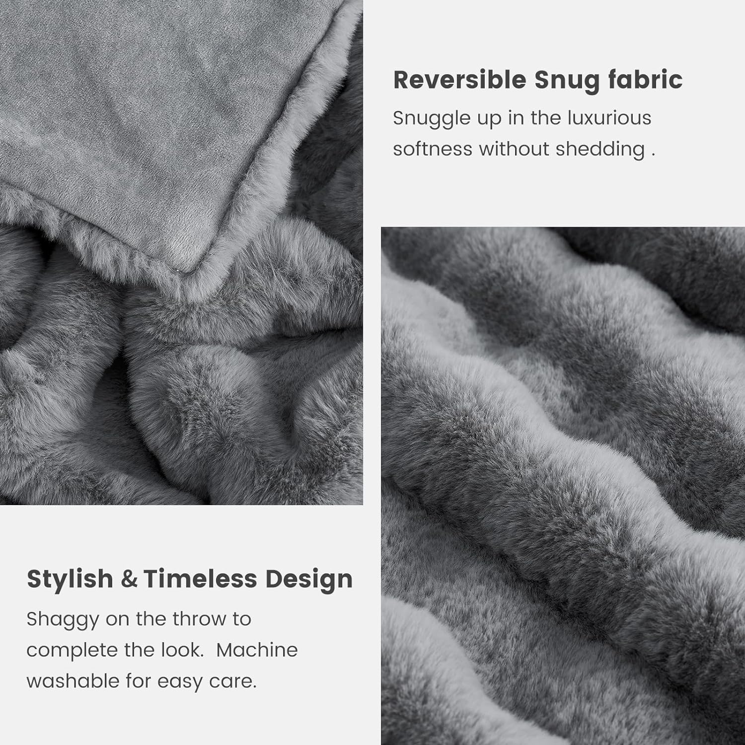 Cozy Bliss Faux Fur Throw Blanket for Couch, Fuzzy Soft Plush Thick Bubble Blanket for Sofa Bedroom Living Room, 60 * 80 Inches Light Grey