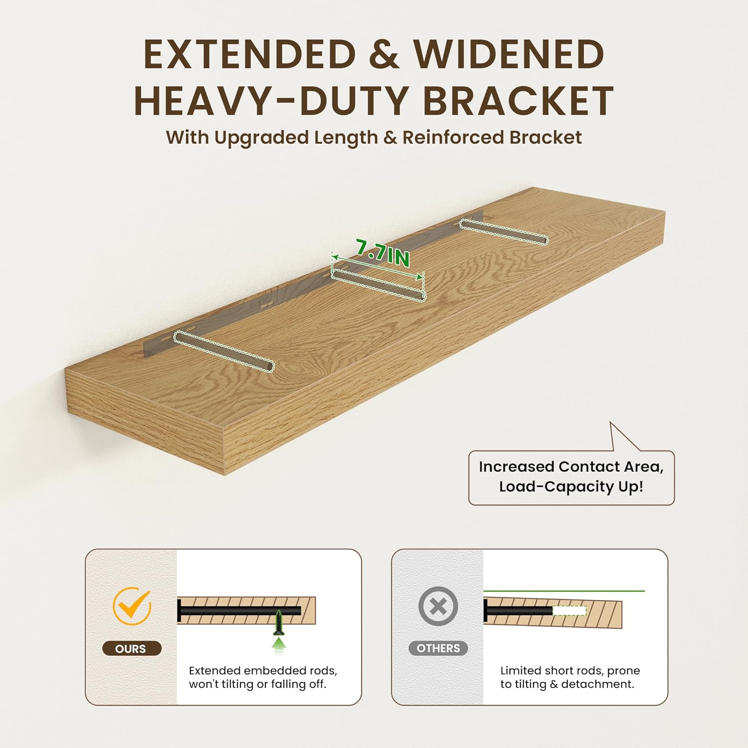 - DEEPER & THICKER SHELF- Our floating shelves measure 72W x 11.6D x 2H, deeper and thicker than usual wall shelves, which create more storage and display space for your home