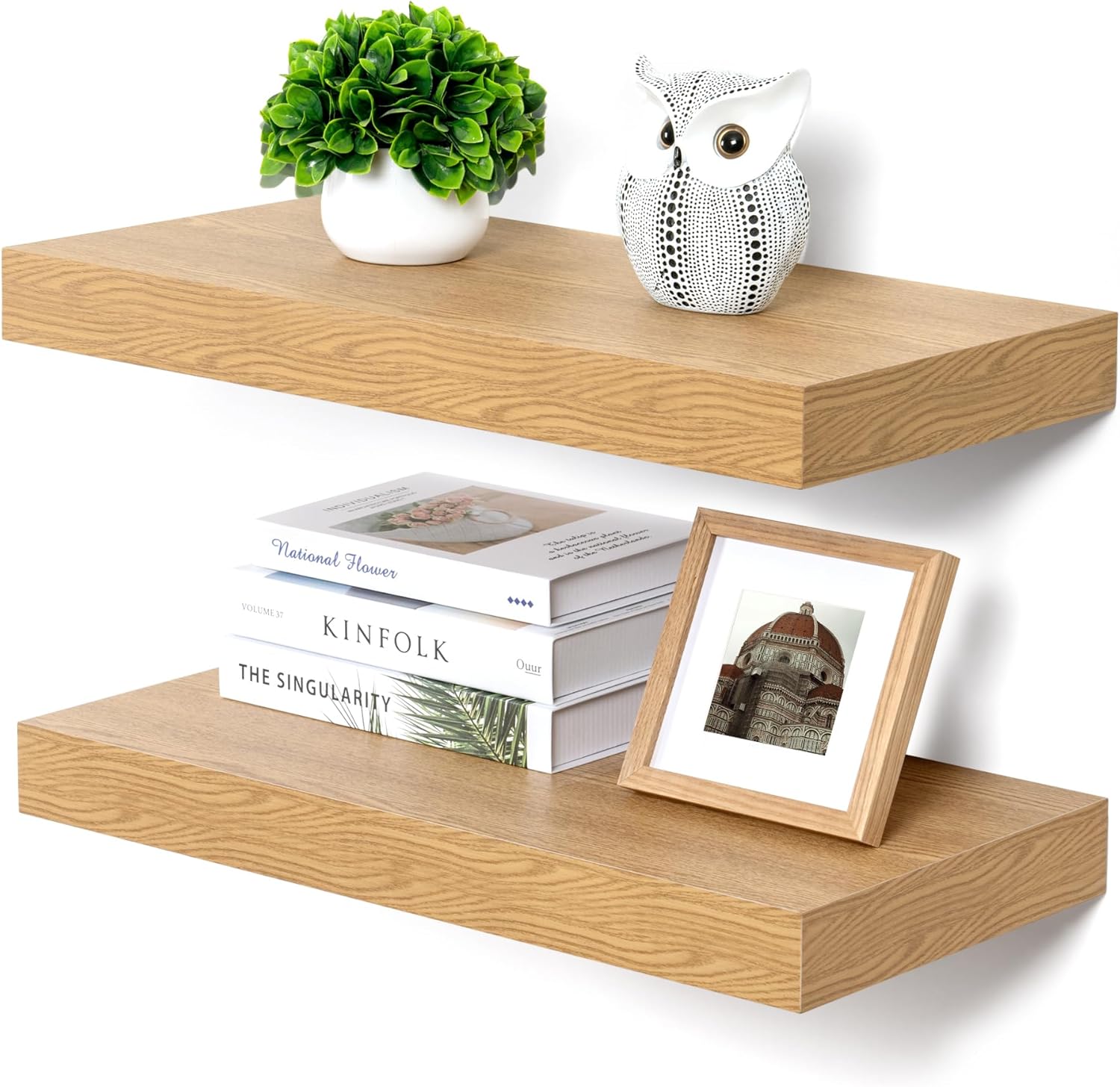 - DEEPER & THICKER SHELF - Our floating shelves measure 24W x 11.6D x 2H, deeper and thicker than usual wall shelves, which create more storage and display space for your home