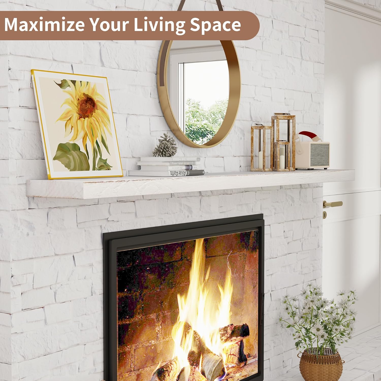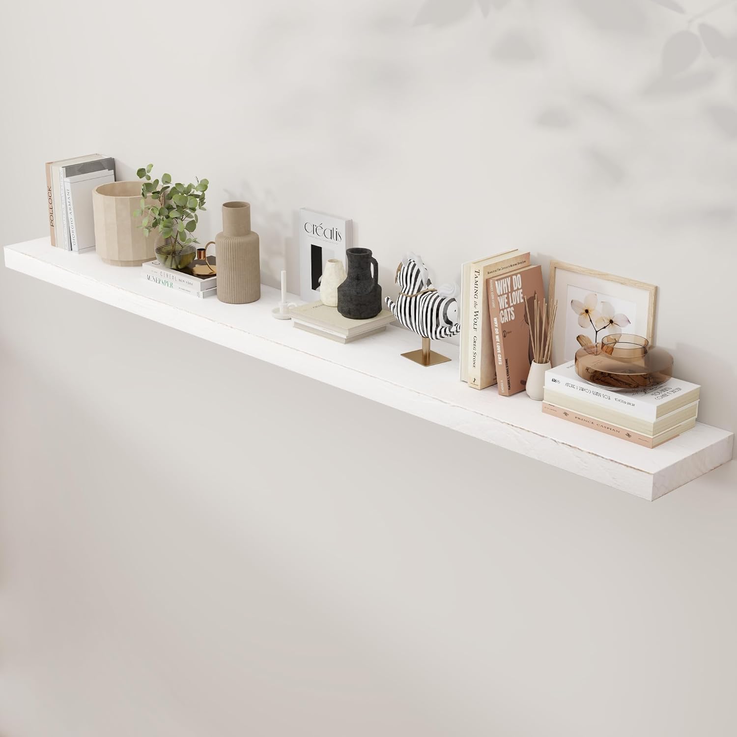 Rustic Elm Wood Floating Shelves - 72'' W x 8" D Wall Mounted Mantel Shelf with Invisible Bracket, Large Long Storage Shelves for Living Room, Bedroom, Kitchen, Bathroom, White Wash