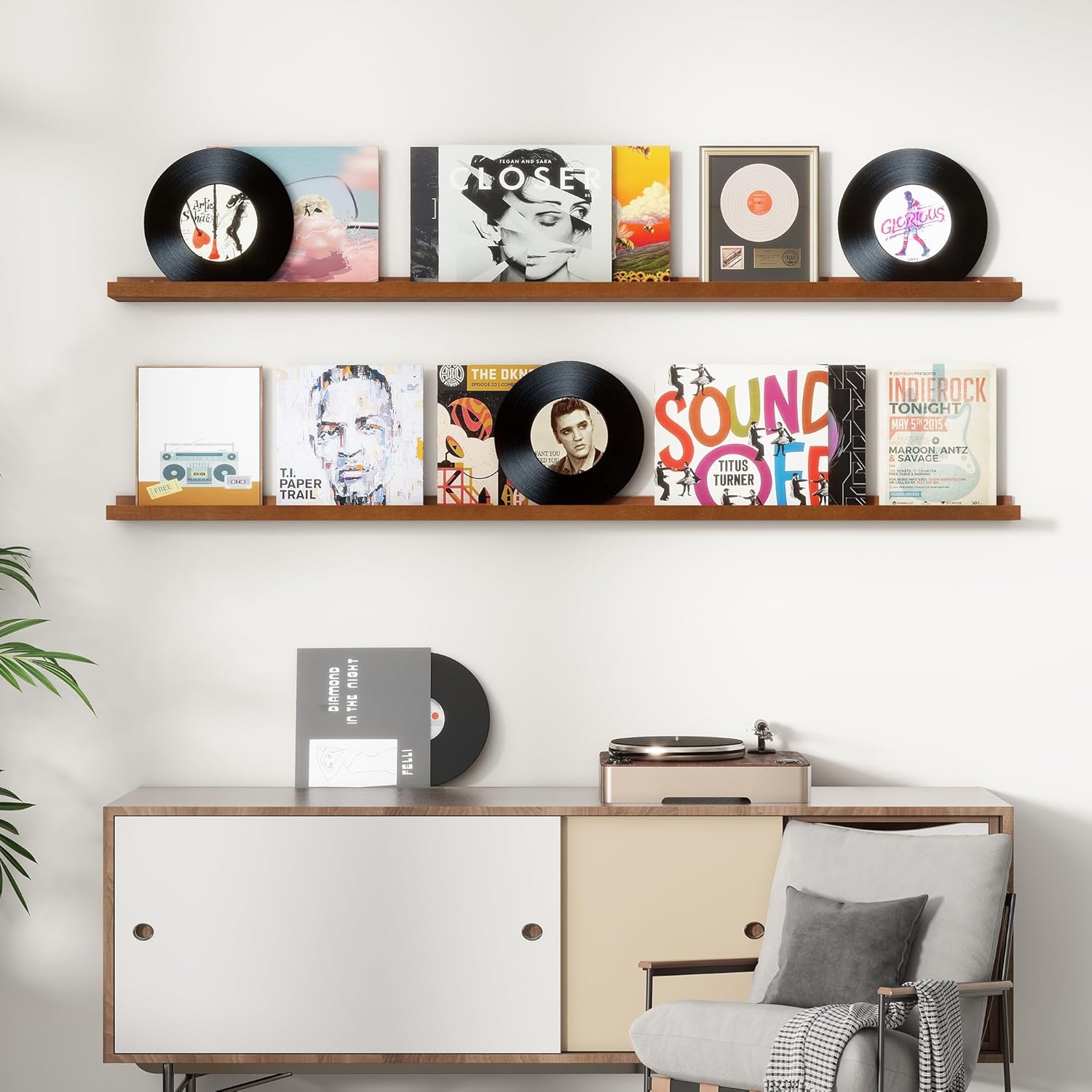 Picture Ledge Shelf, Floating Shelves Set of 2, Solid Pine Wood 72'' Long Large Nursery Book Shelves for Toys Storage, Kids Bookshelf for Living Room Bedroom Decor Books Photo Frames, Walnut