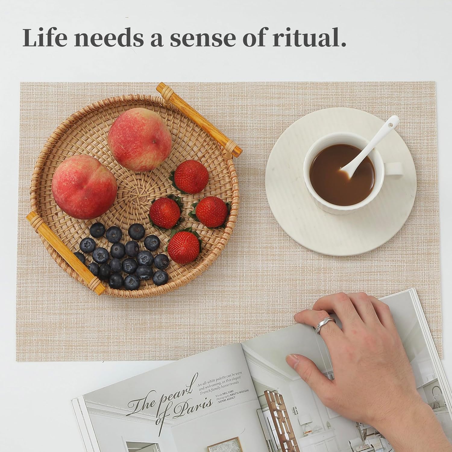 - Elegant and Practical Design: With a luxurious vinyl woven texture, precision cutting, and heat-trimmed edges, our double-sided placemats offer a sophisticated and practical solution. They provide a non-slip surface, resist fading, and are easy to clean, elevating your dining experience.