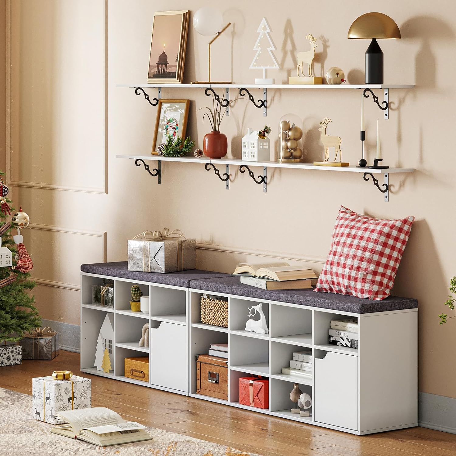 - 【Age with Grace in Any Setting】Turn your any wall into a real eye-catcher space with these large wall shelving. Long and wide enough for plates, glasses, books, legos, collection or towels etc. Make a statement in entryway, bathroom, balcony, study, kitchen, laundry, bar area, pantry