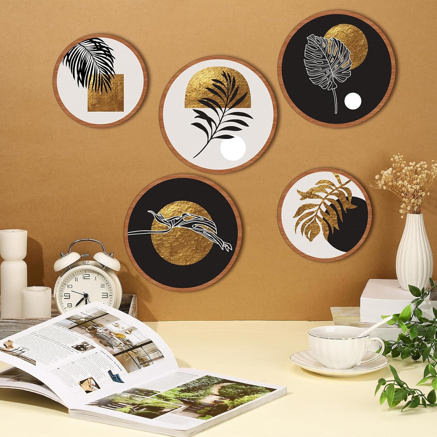 - Proper Size for Display: there are 2 kinds of sizes of the aesthetic wall art, 3 bigger ones measure about 10 inches/ 25 cm in diameter, and 2 smaller ones are about 8 inches/ 20 cm in diameter, all of them are about 0.2 inch/ 0.5 cm in thickness, proper size to catch people's attention