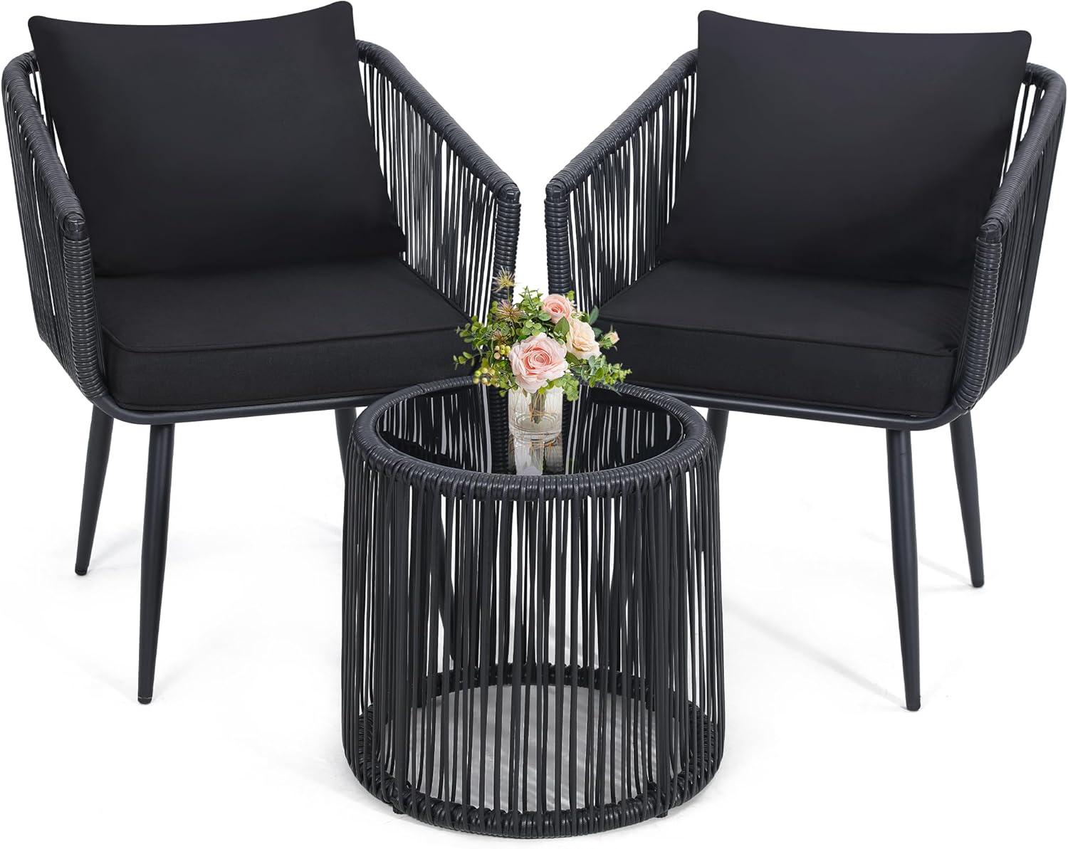 - 【VERSATILE】Our modern design and detailing allows this 3 pieces conversation set to be used indoors, outdoors, on your balcony, front or rear porch, bedroom, living room, poolside, or backyard. They are relatively lightweight and can be easily relocated to suit any occasion or change of season.