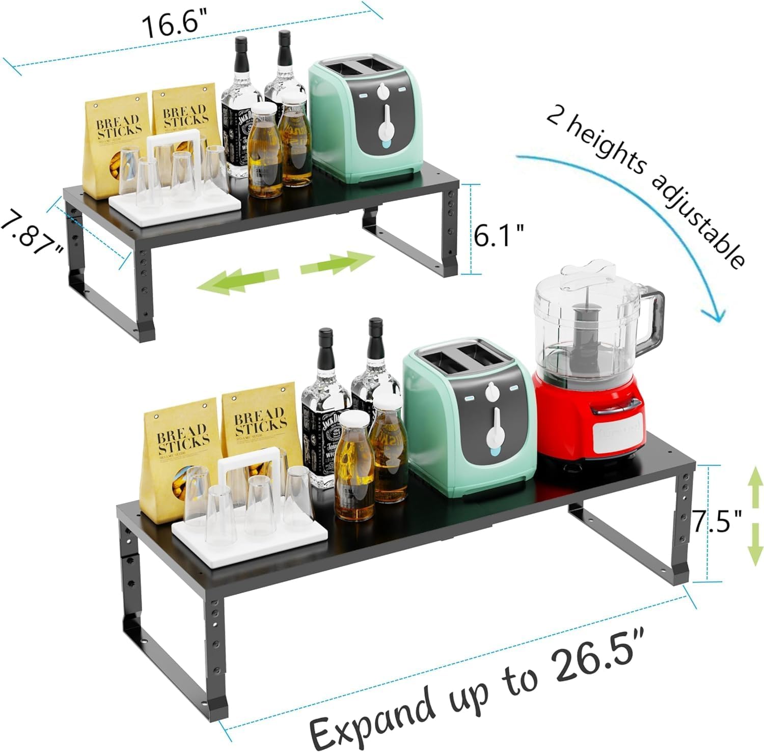 - ⭐【Expandable,Stackable】Compare with other spice rack, our products has expandable length (7.85" D x 16.6~26.5" W x 6.22~7.48"H)depending on how you want to arrange your space. You can use it alone or get more packs to stack them together to create more space.