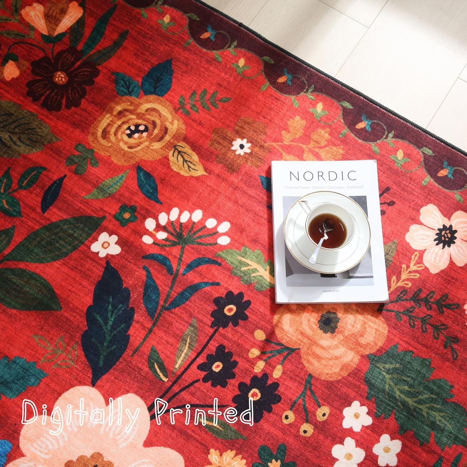 Runners for Hallways Kitchen Runner Rug Non Slip 2'x 10' Long Washable Rugs with Rubber Backing Soft Floral Carpet Runner for Hallways, Kitchen, Laundry, Bedroom, Bathroom(Red)