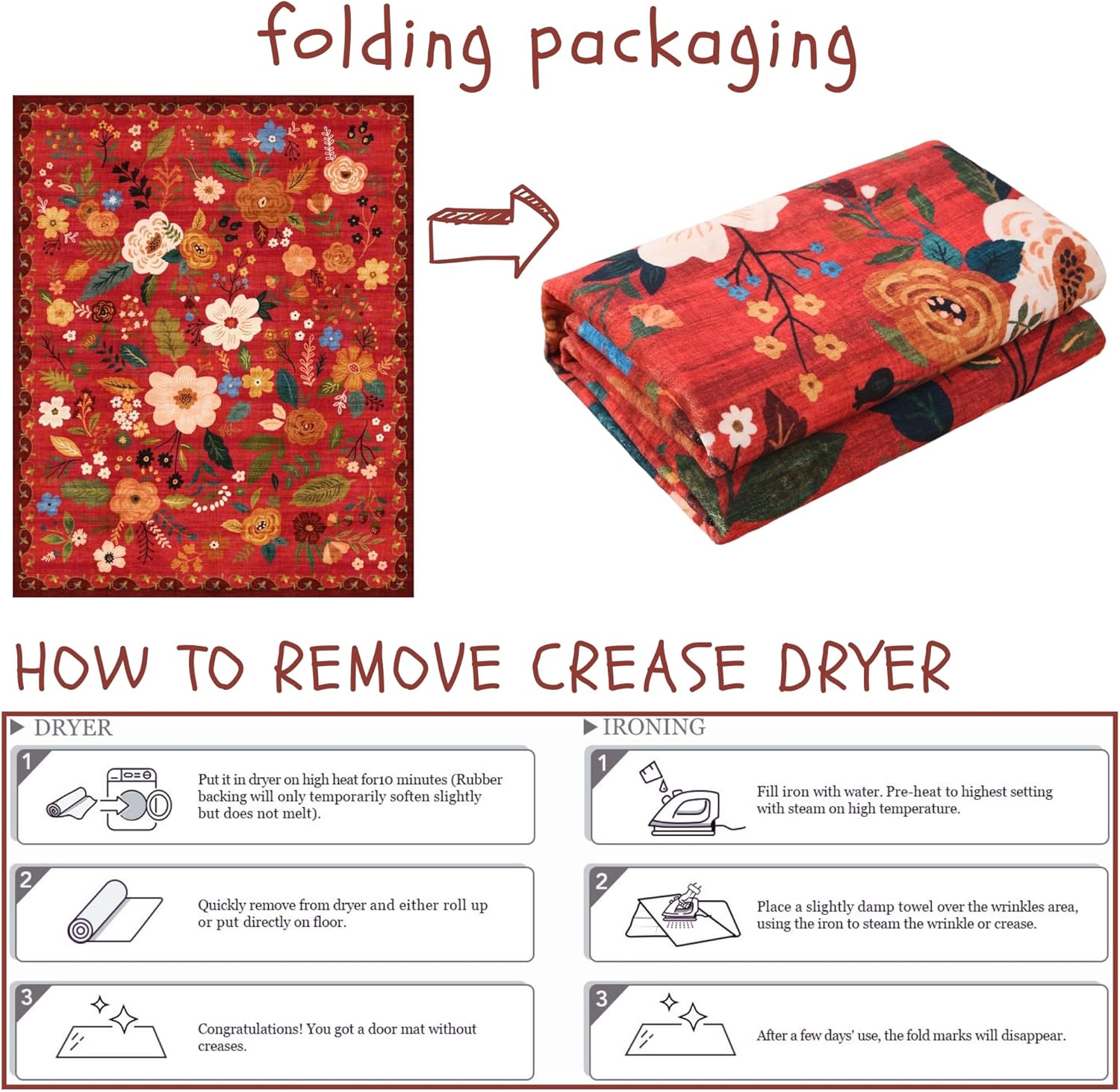 Door Mat Indoor Entrance 2x3 Rug Machine Washable Boho Floral Small Area Rug Non-Slip Low Pile Throw Rugs for Entryway, Kitchen, Front Door Indoor Entrance, Entry, Kids Room (Red)