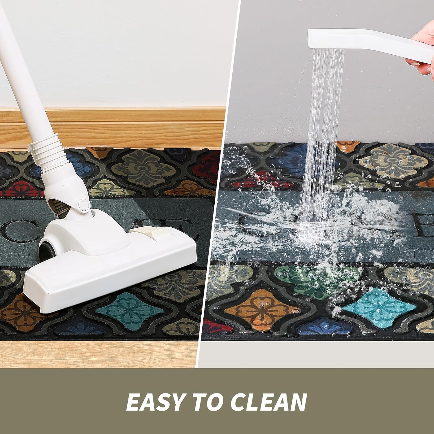 - 【Easy to clean】:Clean it regularly with a broom or vacuum cleaner and shake it off outdoors or above the trash can.Or use a garden hose to rinse the mat outdoors,the doormat is still the same as new.