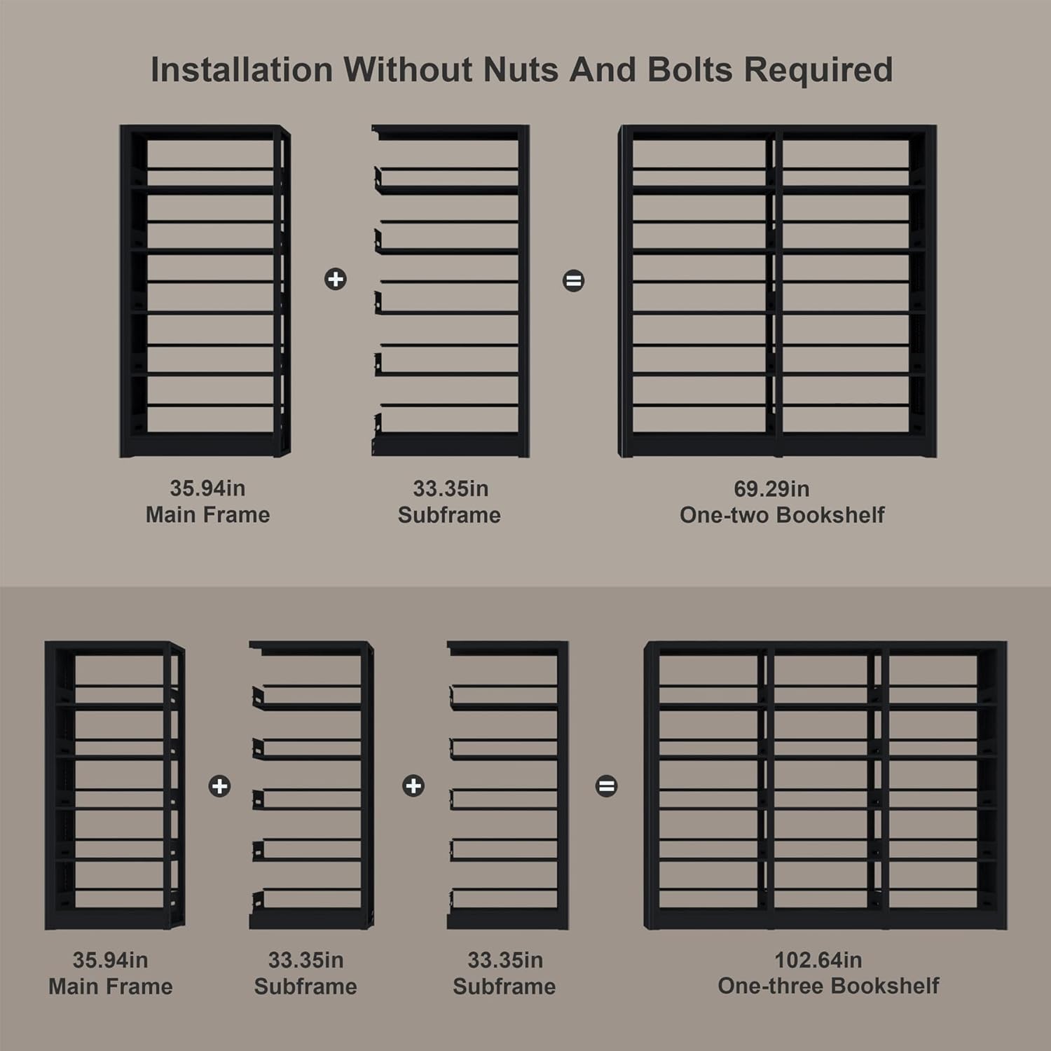- 【Large Load-bearing Steel Bookshelf】Metal bookshelf Features:Heavy load bearing,Stable,Sturdy,Non-pollution,Long service life.Move multiple installation is not easy to damage.Our bookshelf is made of cold rolled steel and can hold up to 280 pounds per shelf. The ironck bookshelves are better load-bearing than wooden bookshelves and stronger than wooden bookshelves.