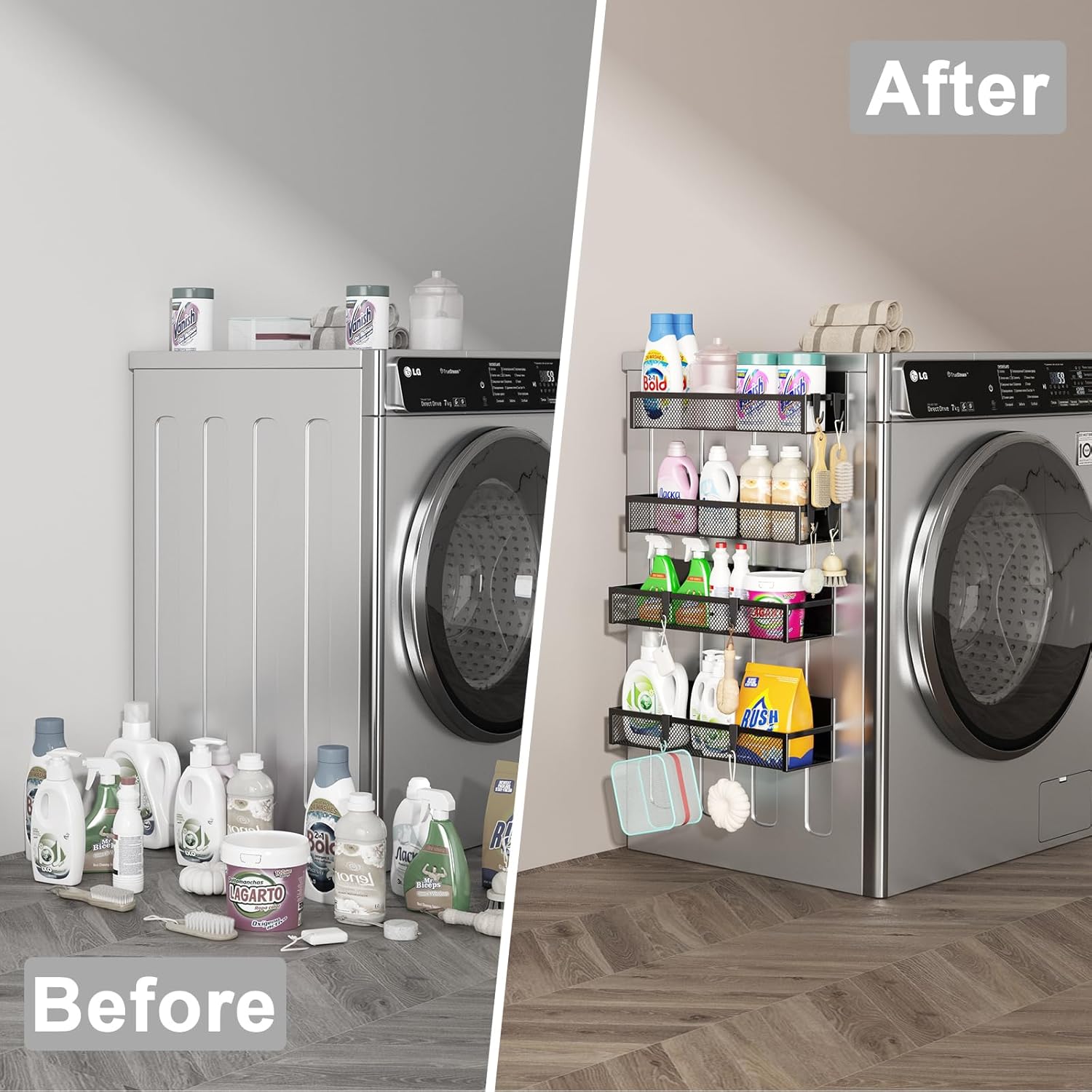 - Perfect Space Saving Solution: Aufworld magnetic basket is a great way to store spices, which hold free up countertop & cabinet space and keep them clear of clutter. Our Magnetic Spice Rack for Refrigerator comes with 4 separate shelves and 8 extra moveable hooks. Practical moveable hooks can be hung with various laundry supplies and kitchen utensils.