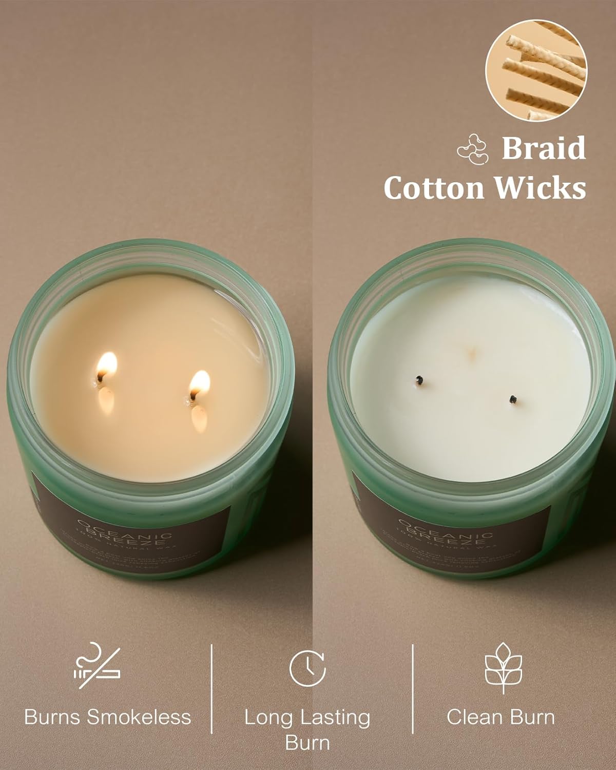 - ๐ณ Clean Consistent & Even Burn - Using 2 American made lead-free cotton wicks for a even burn result. They're cotton flat braid wicks with paper throughout, providing increased rigidity and burn more consistently than 100% cotton wicks. Designed to reduce carbon buildup which leads to black soot.