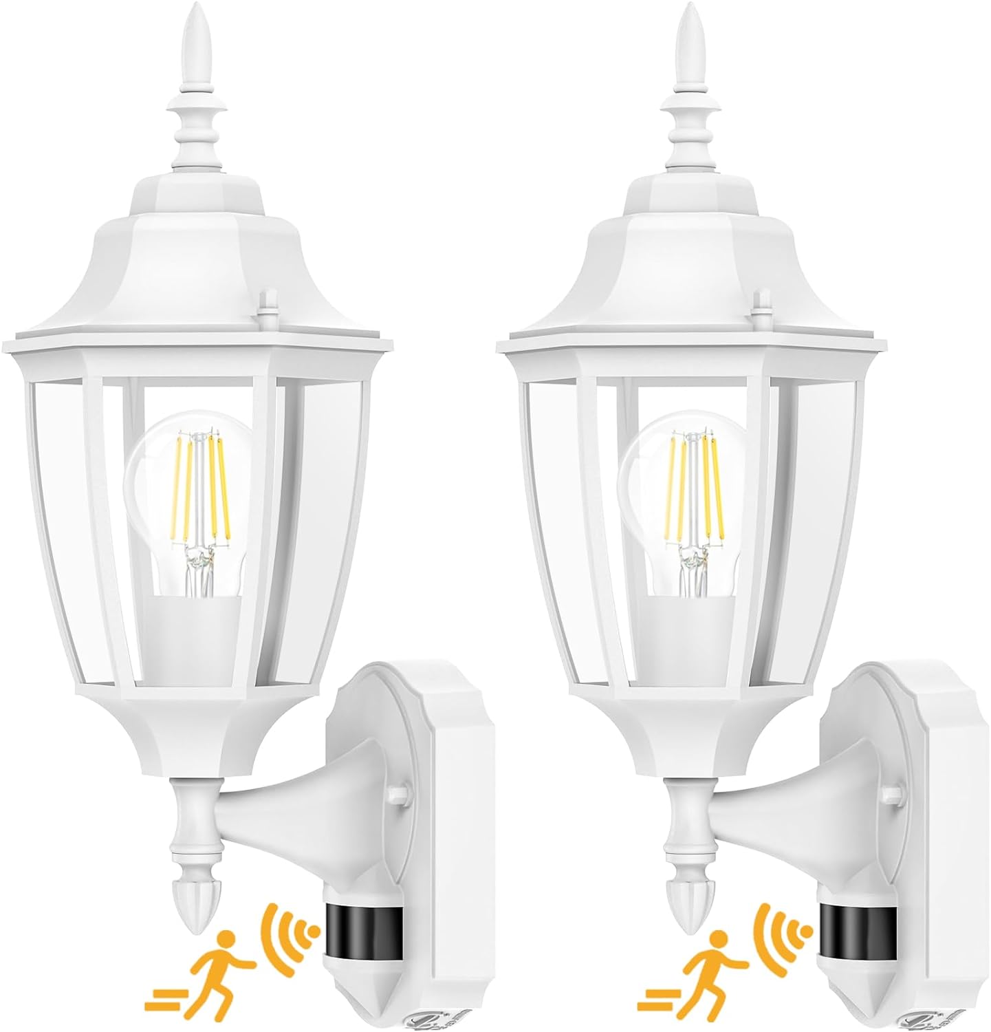 Lamomo Outdoor Wall Sconce, 2 Pack Dusk to Dawn Motion Sensor Light Fixtures, Exterior Aluminum Waterproof Porch Lights for Patio Front Door Garage- White