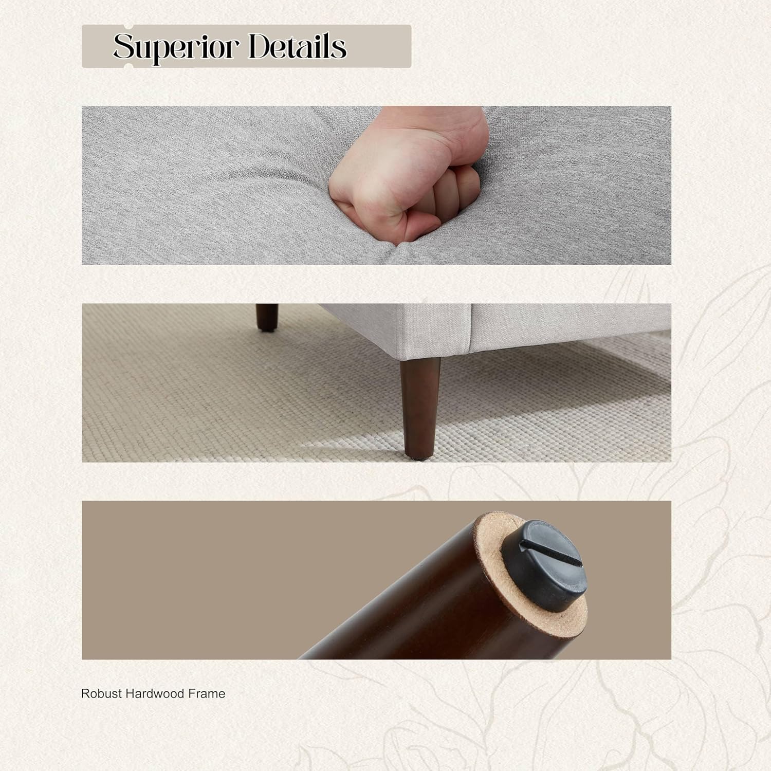 - BUILT TO LAST:Crafted with a robust hardwood frame and solid wood legs,this chair is a statement of durability,making it the ideal armchair; No need to worry about scuffs,as the legs are thoughtfully fitted with non-slip felt pads