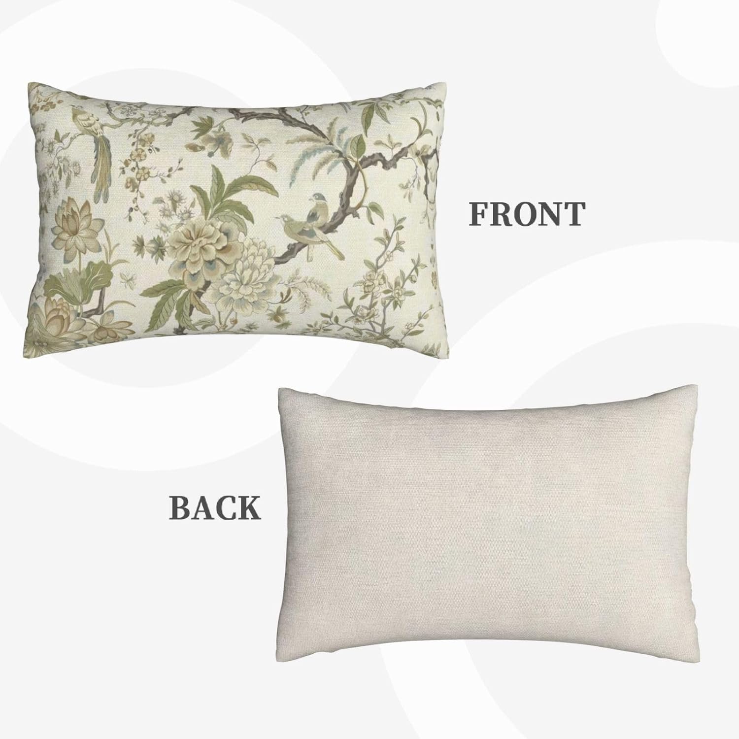 - 【Spring Pillow Covers】 Our Chinoiserie floral throw pillow covers 12x20 inch are made of excellent breathable polyester cotton fabric. The sage green floral decorative pillow covers is durable, soft and skin-friendly. The plant outdoor pillow covers adopt exquisite edging technology and four sides of our floral pillow covers are sewn firmly, which is not easy to open the line.