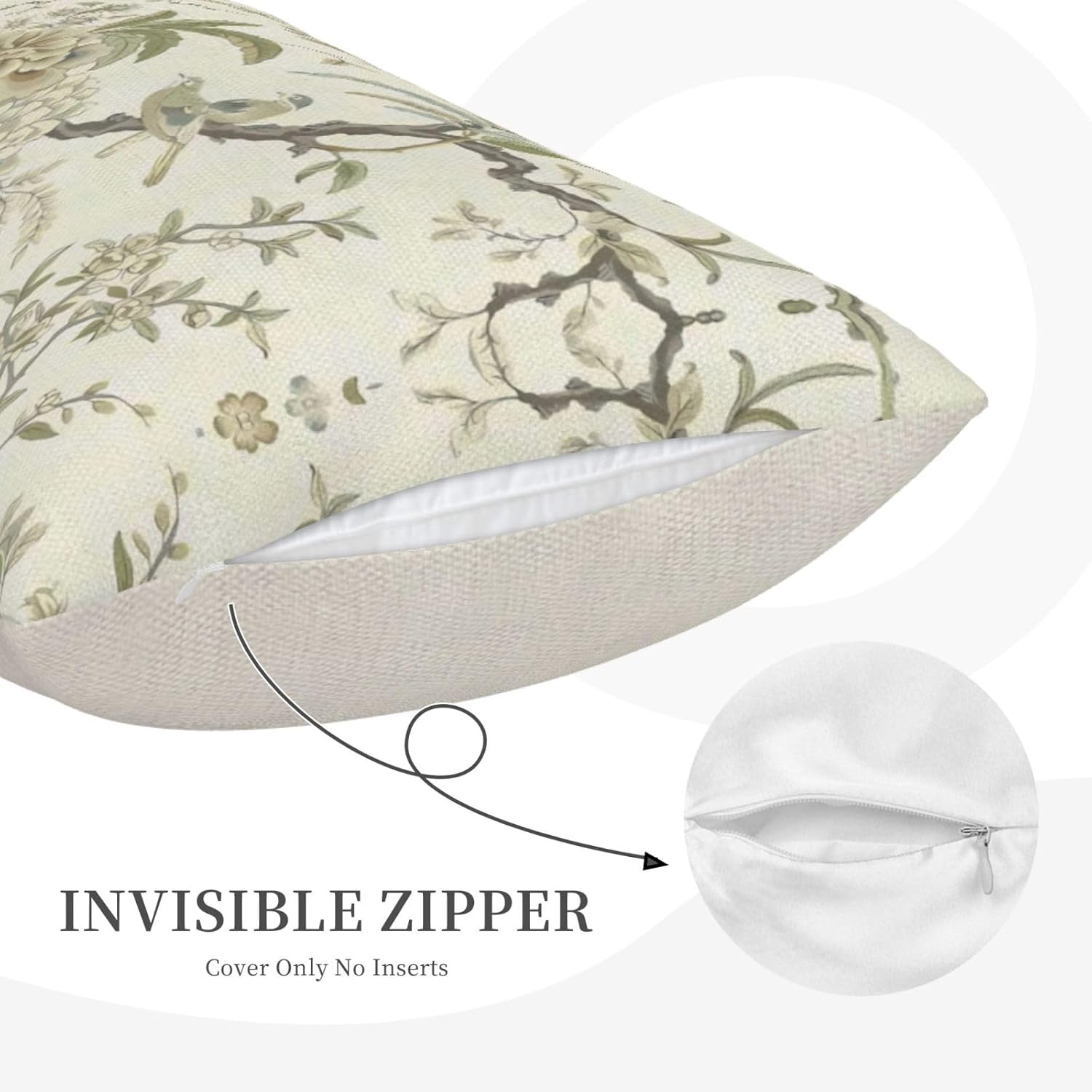 - 【Lumbar Pillow Covers Size】 Chinoiserie flower birds pillow case set includes 2 pcs of farmhouse couch pillow covers (NO Pillow). Home decor farmhouse pillow covers measures 12x20 inch/ 30x50 cm. All the dragonfly floral decor throw pillow covers have a hidden zipper. It is easy to insert or remove the pillow core to replace the spring pillowcase. Easy to clean and wash, durable and not easy to damage.