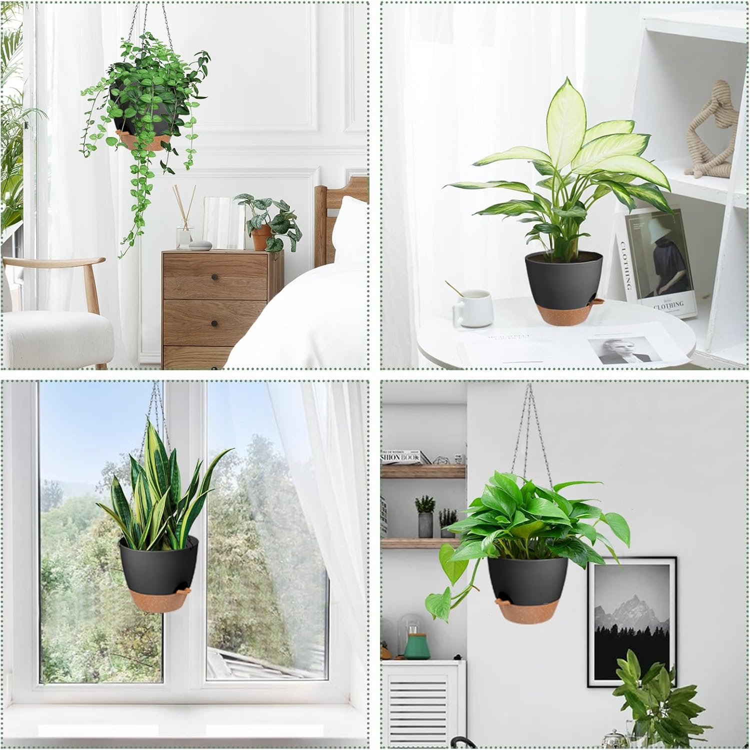 - Self Watering Planters Unique Style Design - The appearance and structural design of the self watering hanging planters for indoor plants are conducive to plant growth, and are suitable for matching various hanging plants. Such as ivy, herbs, ferns, philodendrons, succulents, flowers or other plants. Please Note: Plants NOT included.