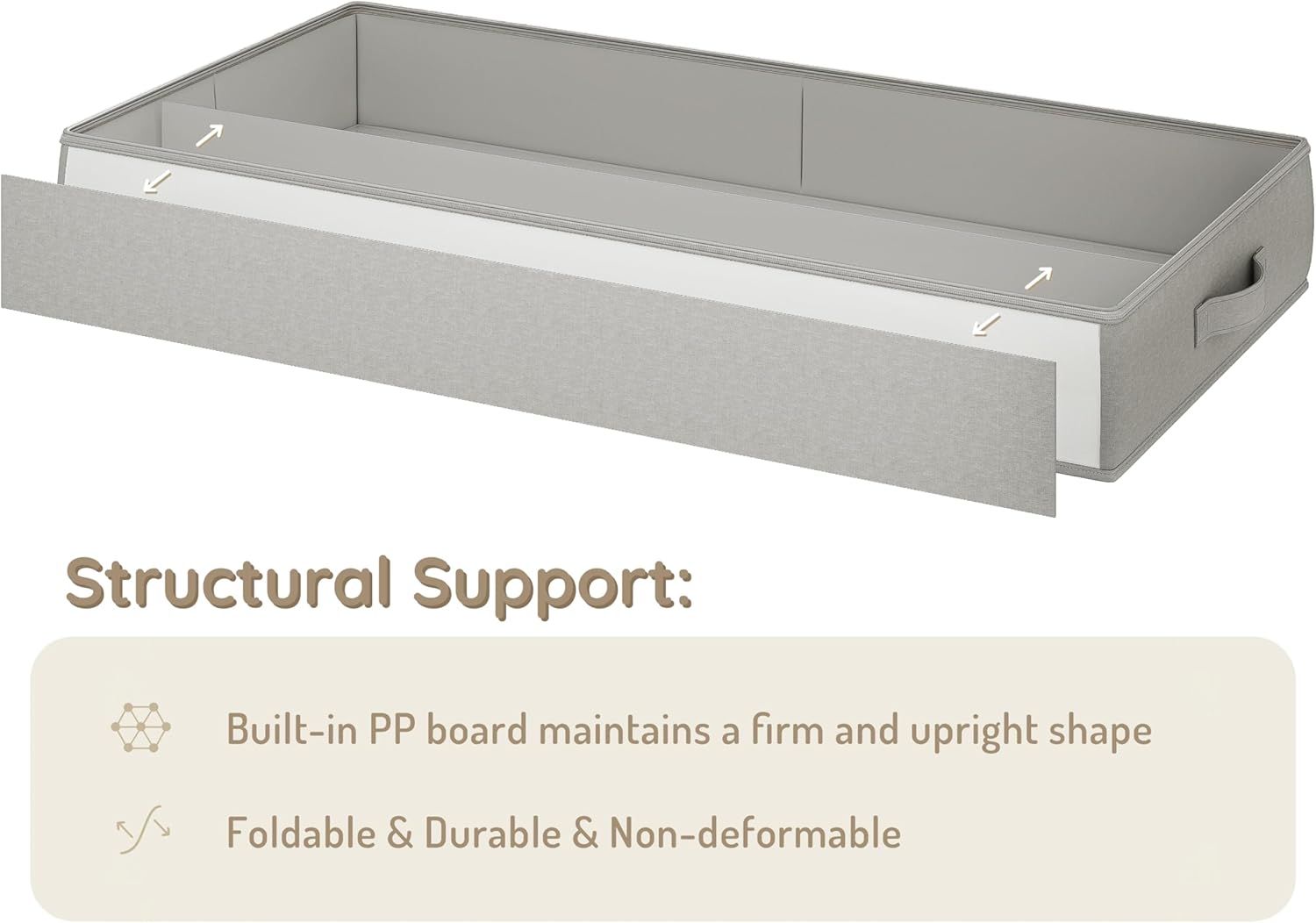 - 【High-end Fabric & Large Capacity】Crafted from high-end, durable fabric, our under bed storage bags measure 33.7"L x 17.1"W x 6"H inches each, offering generous space for your essentials. These containers are your ultimate solution for storing bulky items like seasonal clothing, comforters, and blankets, combining spaciousness with a sophisticated gray design