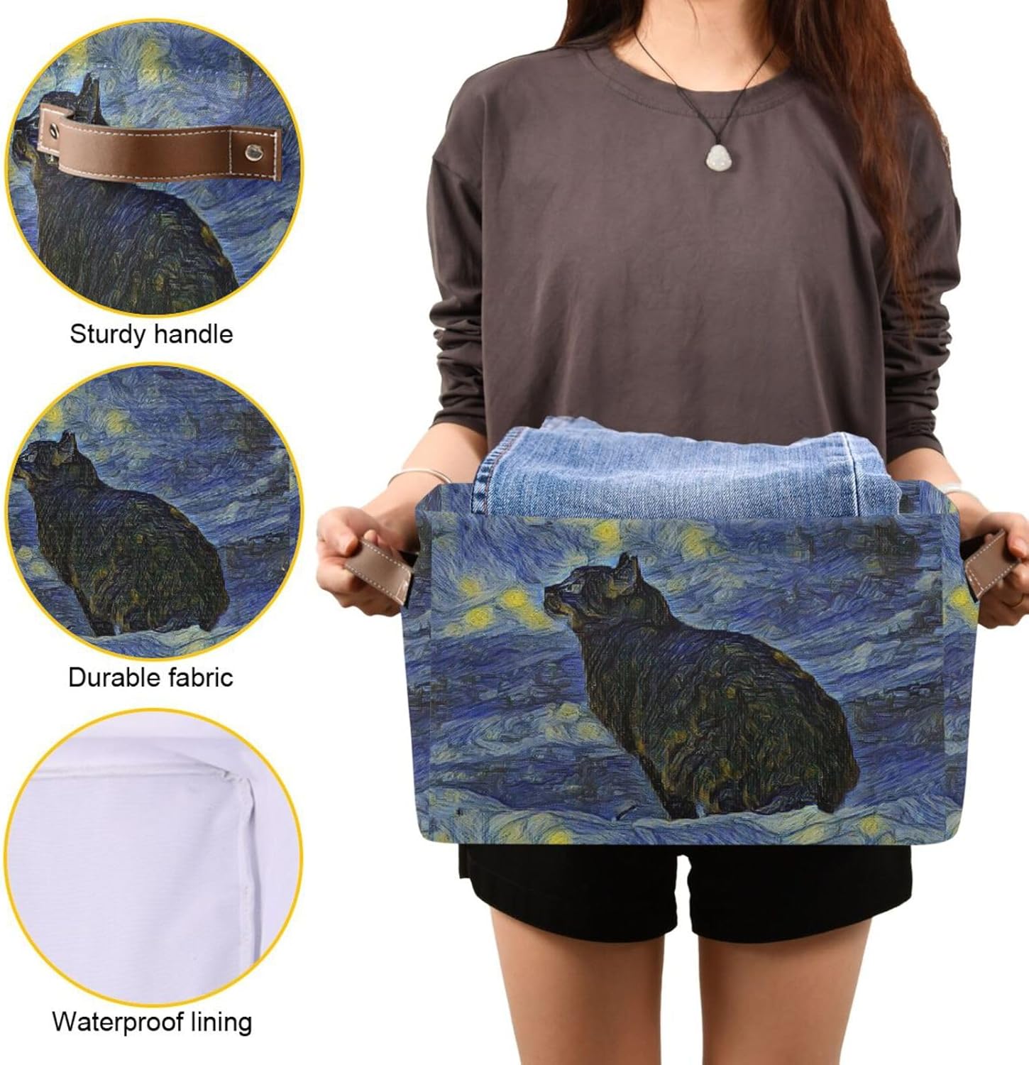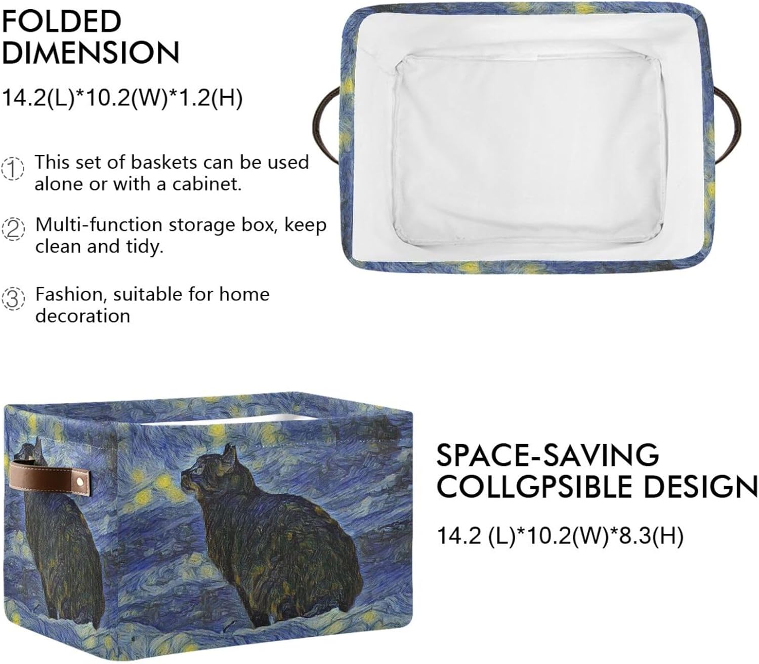 susiyo Storage Baskets for Shelves Organizer Baskets with Metal Frame Closet Storage Bins Fabric Bins Cubes with PU Handles for Organizing Shelf Nursery Toys 2 PACK,Black Cat