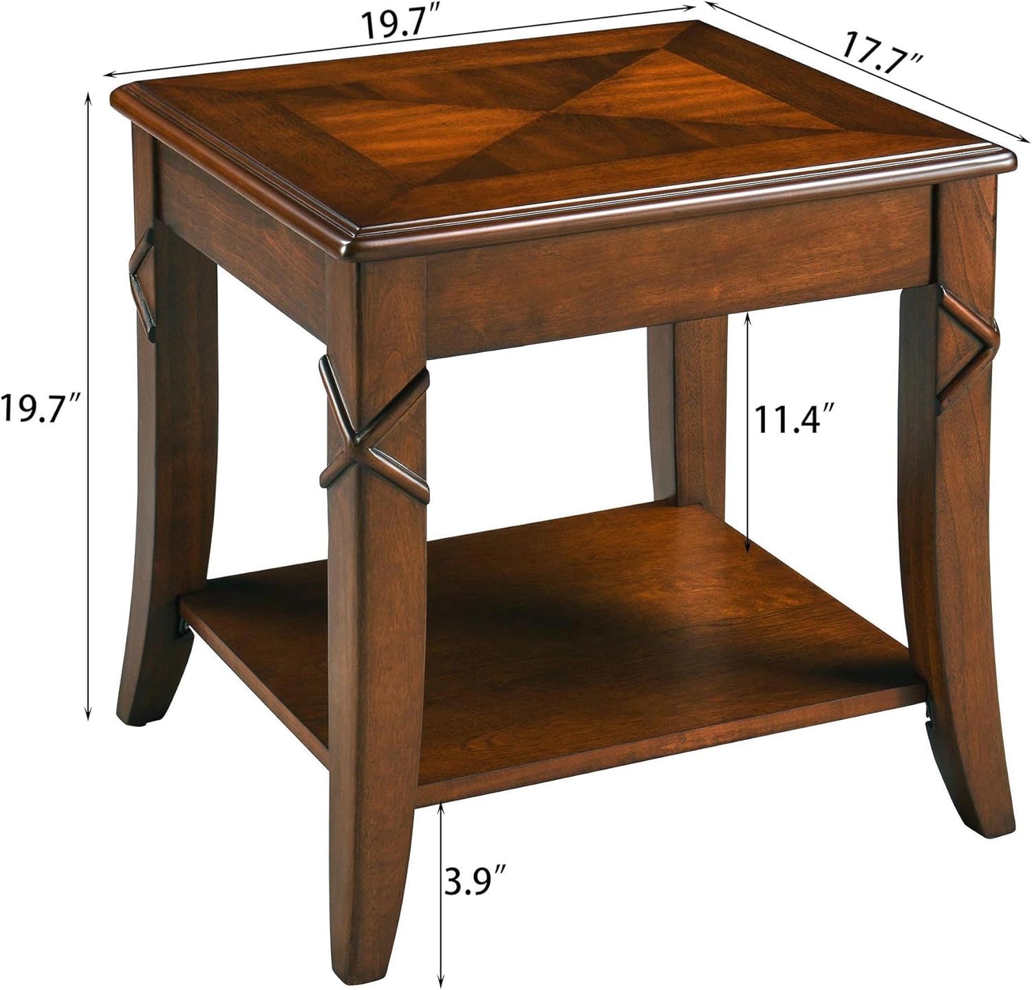 Solid Wood End Table with Storage Shelf, Vintage Rectangle Sofa Side Table with Splicing Tabletop and Carved Leg, BesideTelephone Table Cherry Brown,19.7 * 17.7 * 19.7in CJZ-DR200