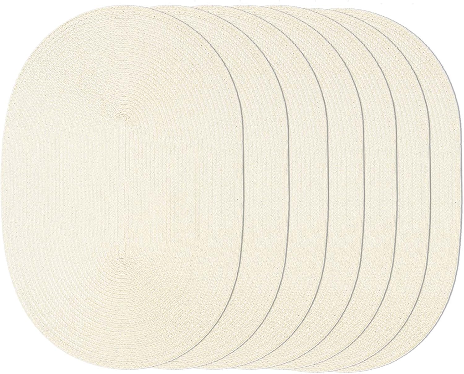 AHHFSMEI Placemats Set of 6 for Dining Table Washable Woven Vinyl Non-Slip 18x12 inches Placemat Heat-Resistant Durable Table Mats for Dining Table Easy to Clean (Oval Beige, 6)
