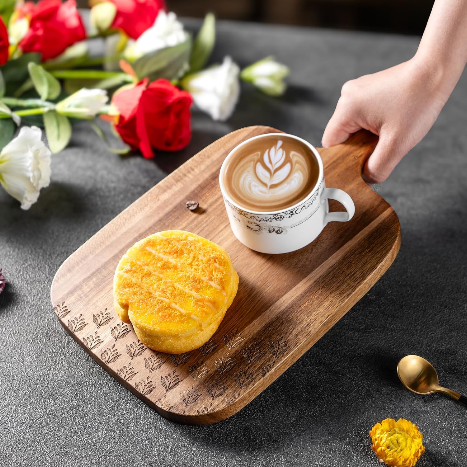 - Elegant Serving Board: Acacia wood is a tropic hardwood known for its durability, water resistance.Each unique piece is enhanced by its distinctive wood grain patterns.Ideal for serving & displaying appetizer food such as cheese, meat, veggies, dips, greenery, crackers, etc.