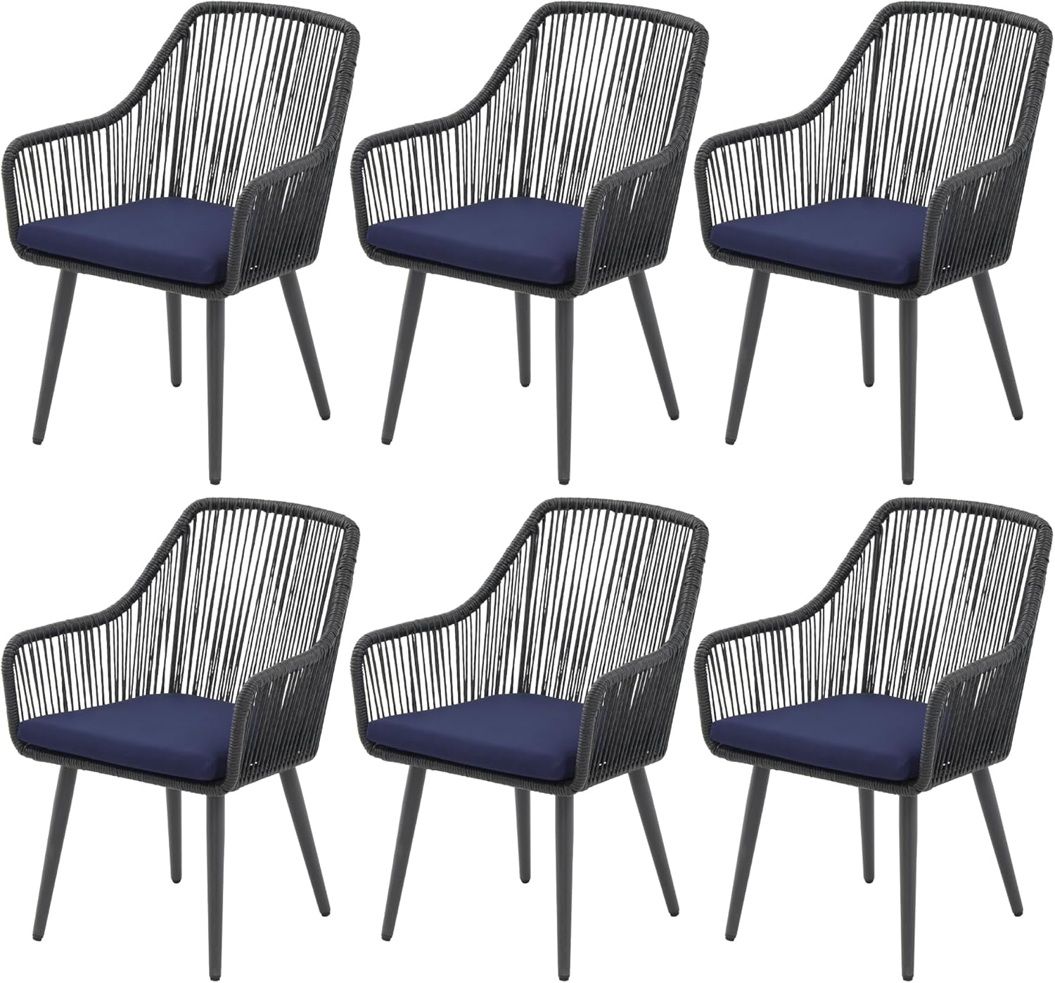 Patiorama Outdoor Dining Chairs, Patio Dining Chair Set of 6, All-Weather Woven Rope Rattan Chairs, Outdoor Dining Wicker Chair with Armrests for Indoor Balcony Pool Backyard(Blue)