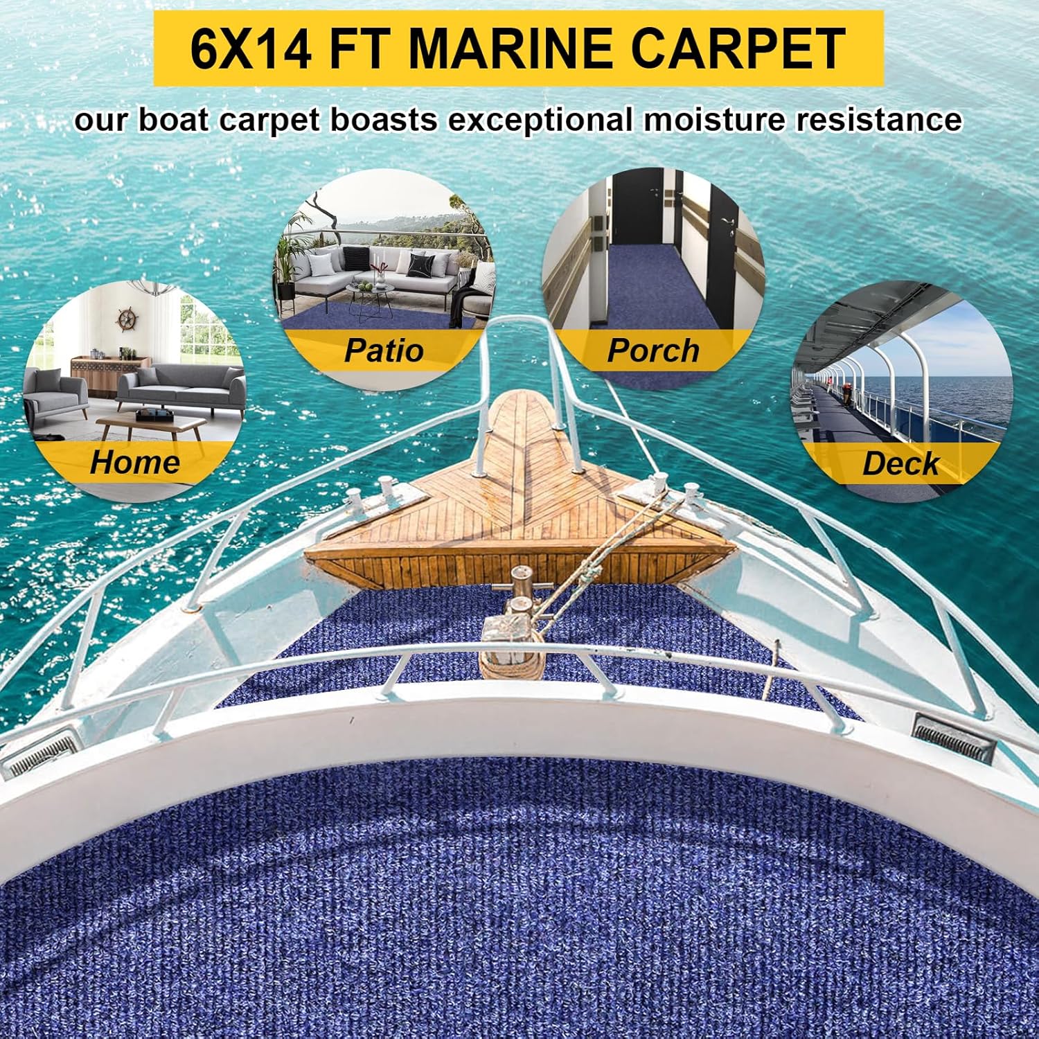 - Premium Indoor Outdoor Carpet: Color: Deep Blue; Size: 6 x 14 FT (1.8 x 4.3 m); Thickness: 0.2 in(5.0 mm). Crafted from high-quality polyester fibers, our boat carpet boasts exceptional moisture resistance, durability, shape retention, and colorfastness, ensuring a long-lasting and vibrant addition to your space.