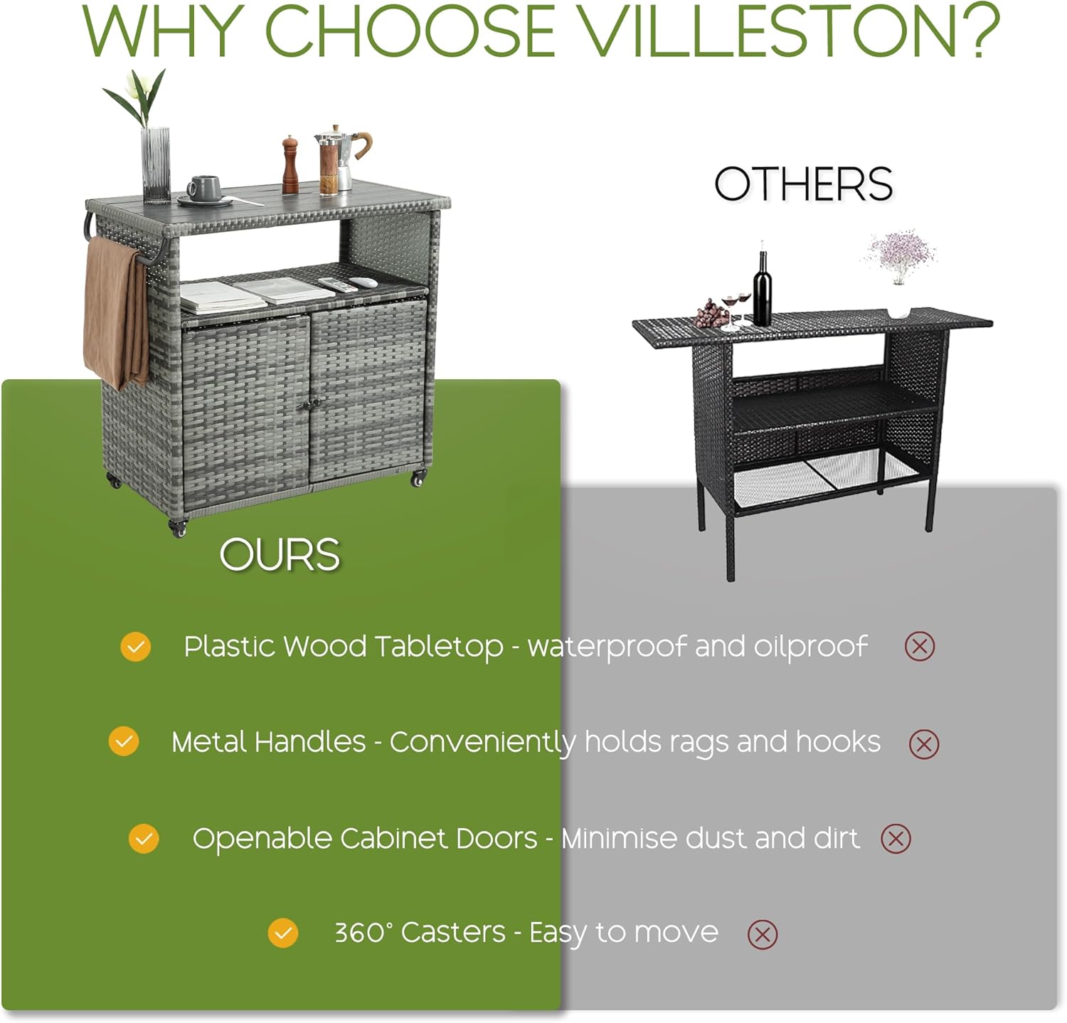 - GREAT STORAGE SPACE: Our patio cabinets is designed to be adaptable. It has a spacious tabletop, an open shelf and a closed cabinet, providing plenty of space for efficient organisation and easy access