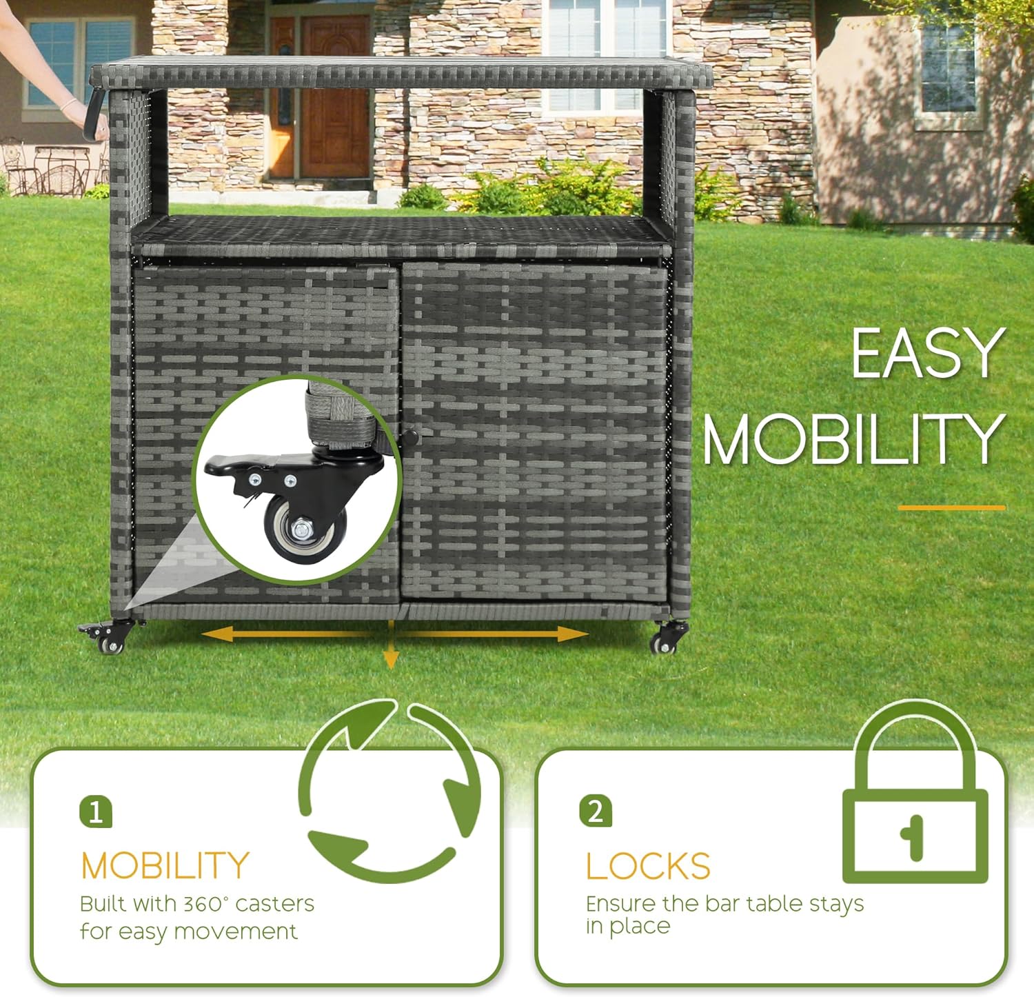 - DURABLE RELIABILITY: The outdoor kitchen cart is equipped with 360° smooth wheels for effortless movement to any position, and one side of the wheels is equipped with a locking feature to keep it in place